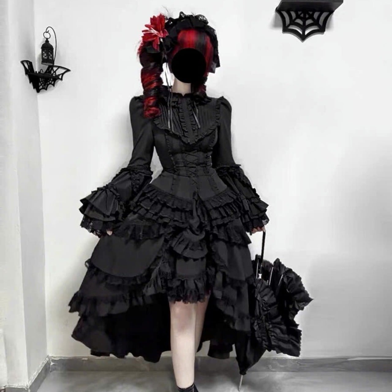 【ゴスロリ ワンピース 付け袖】クラシカル 黒レース 初心者向け ロリィタドレス|Alicestyle