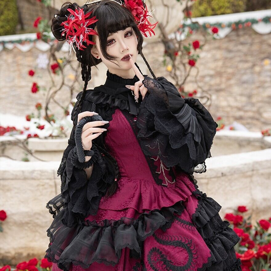 華やかさと退廃的な美しさが融合した、ゴスロリの魅力を最大限に引き出すジャンパースカート。