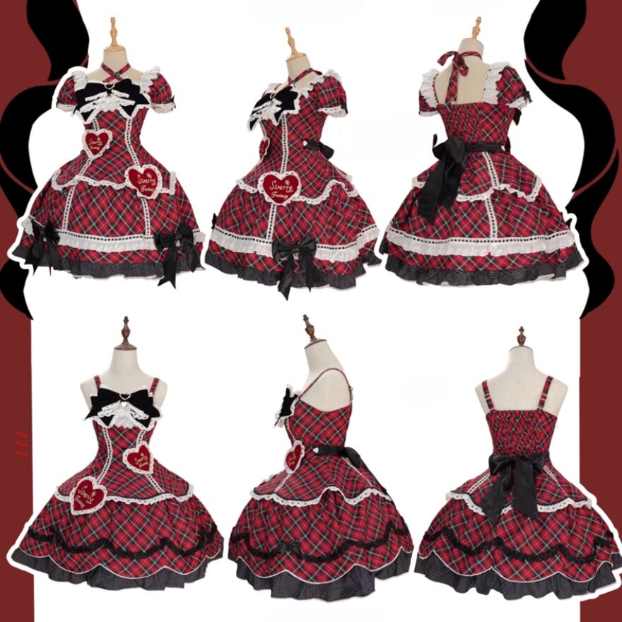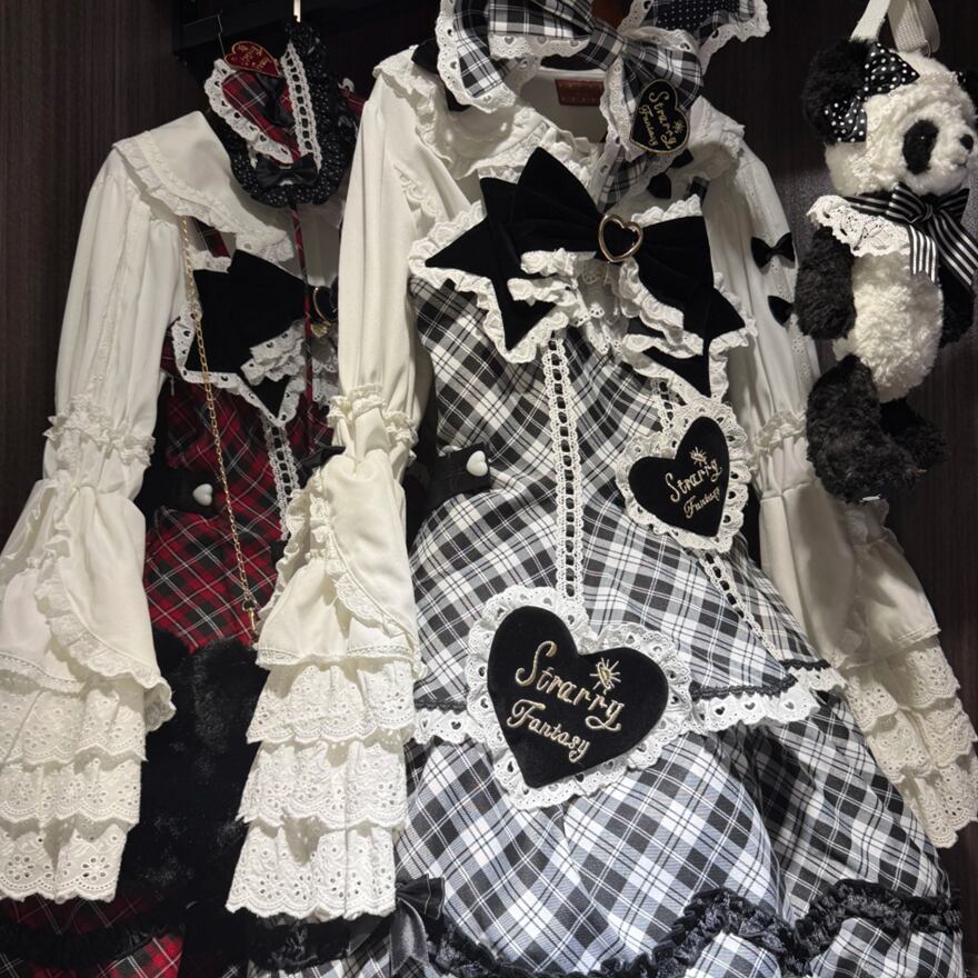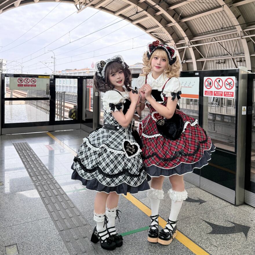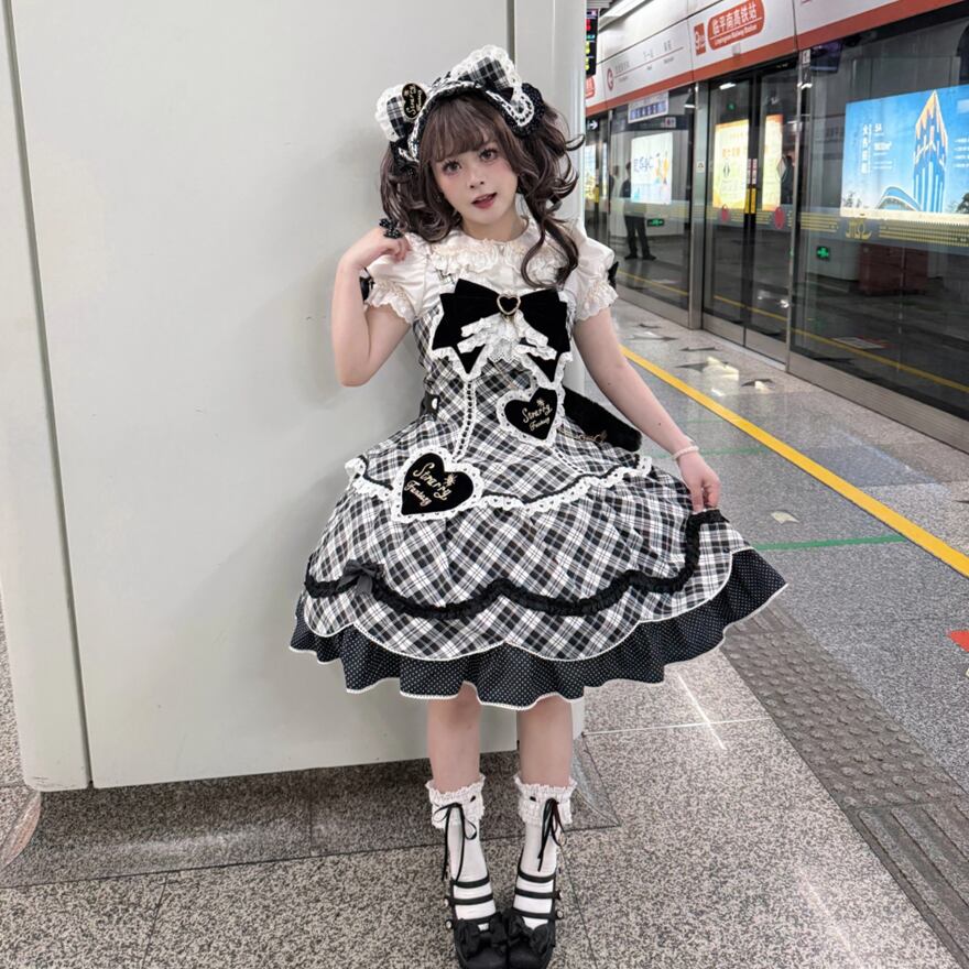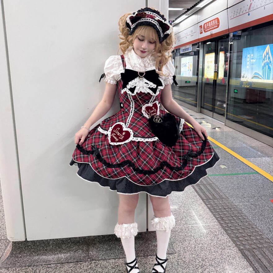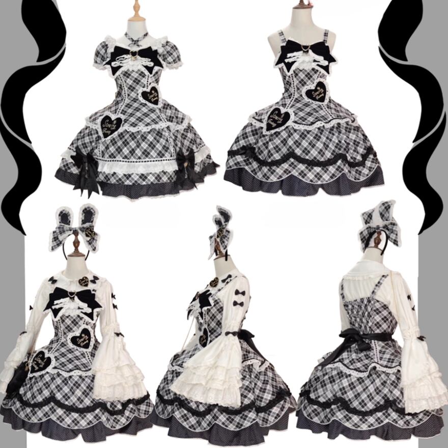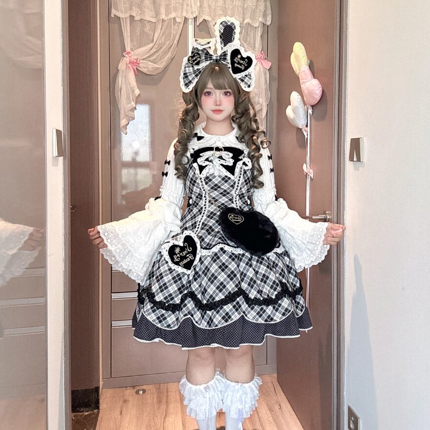 関連キーワード:#ロリータ #甘ロリ #ジャンパースカート #チェック柄 #リボン #ハート #姫袖 #可愛い