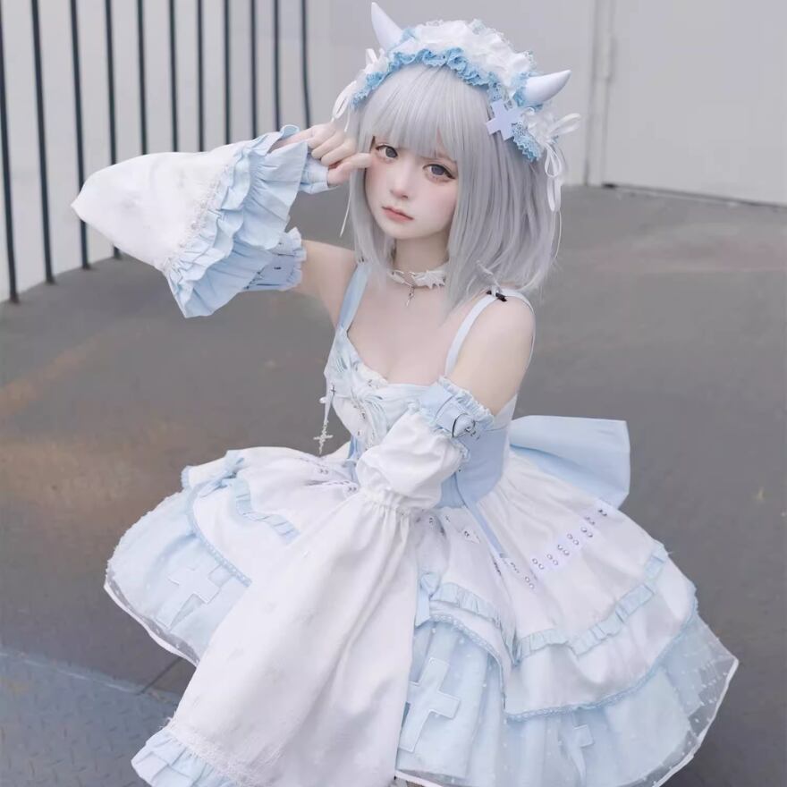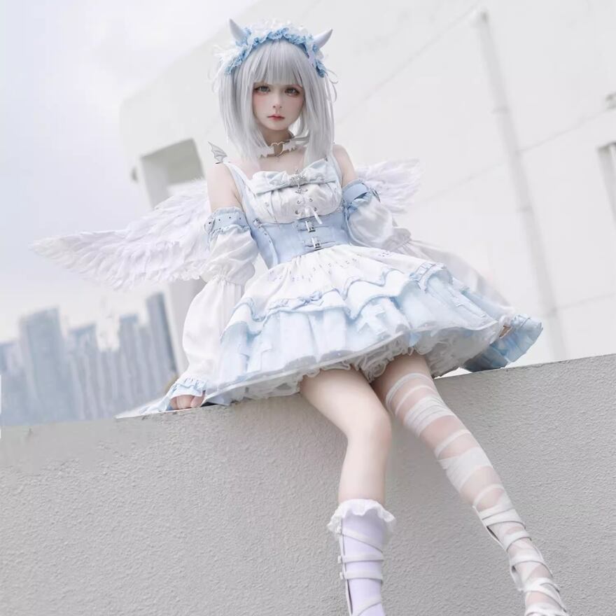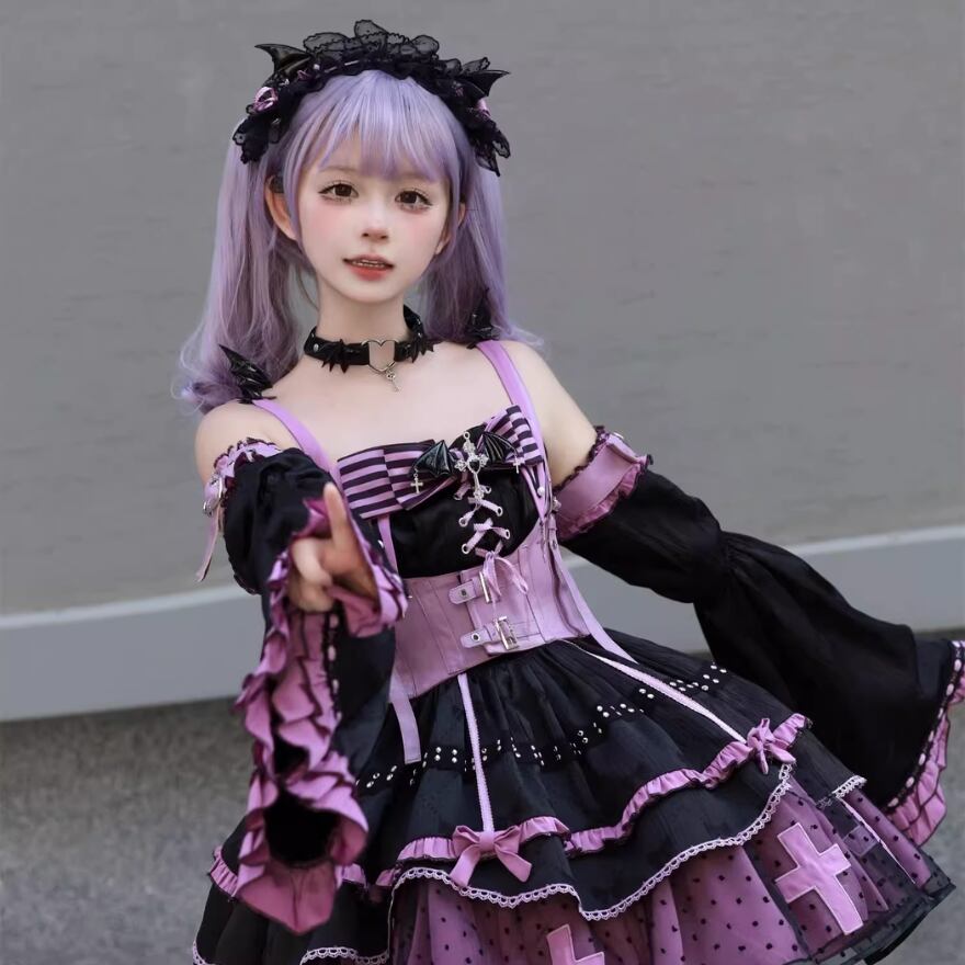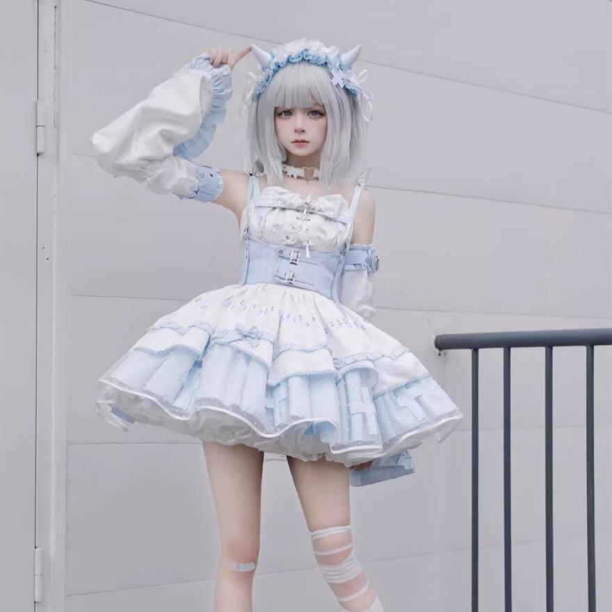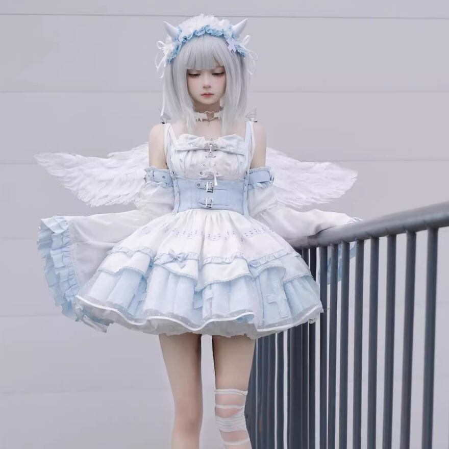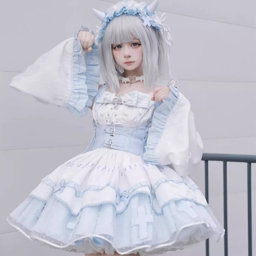 セット内容:チョーカー、ジャンパースカート、姫袖、バックリボン、ウエストベルト(コルセット)