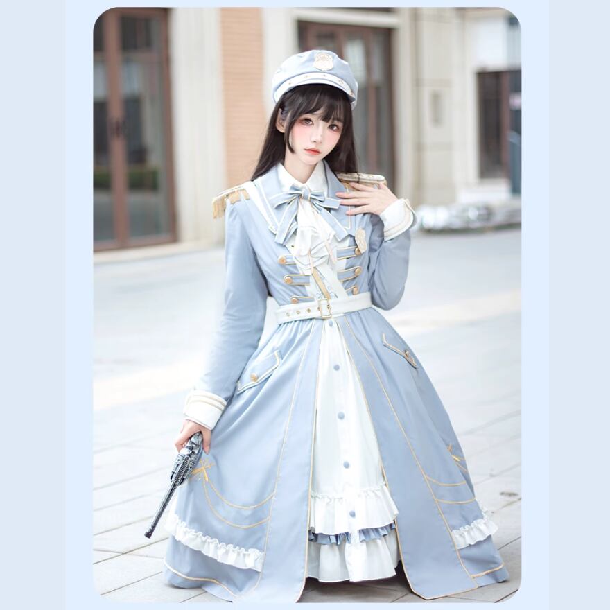 軍服ロリータ スカート ミリロリ ミリタリー 刺繍 ライトブルー コンカフェ ファンタジー