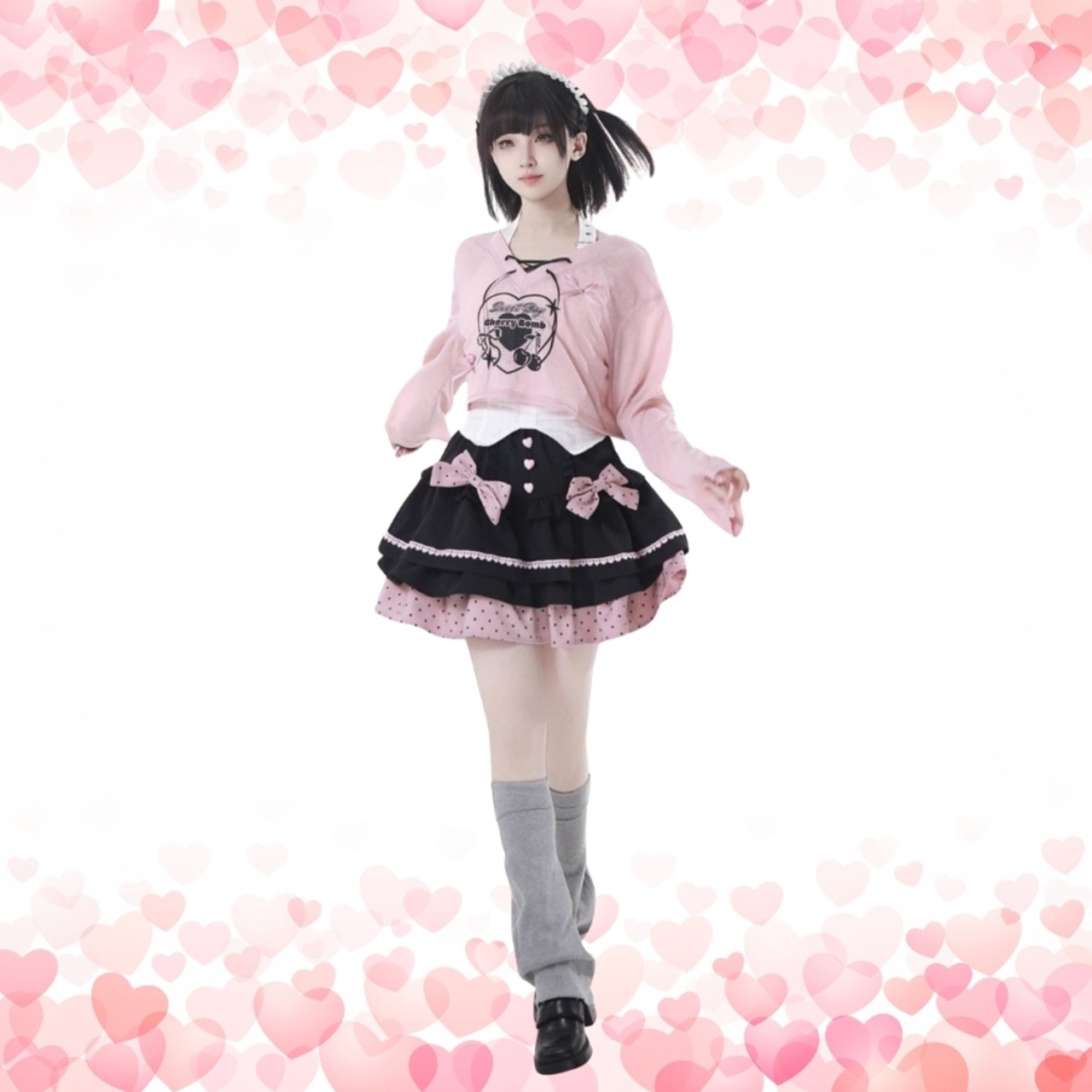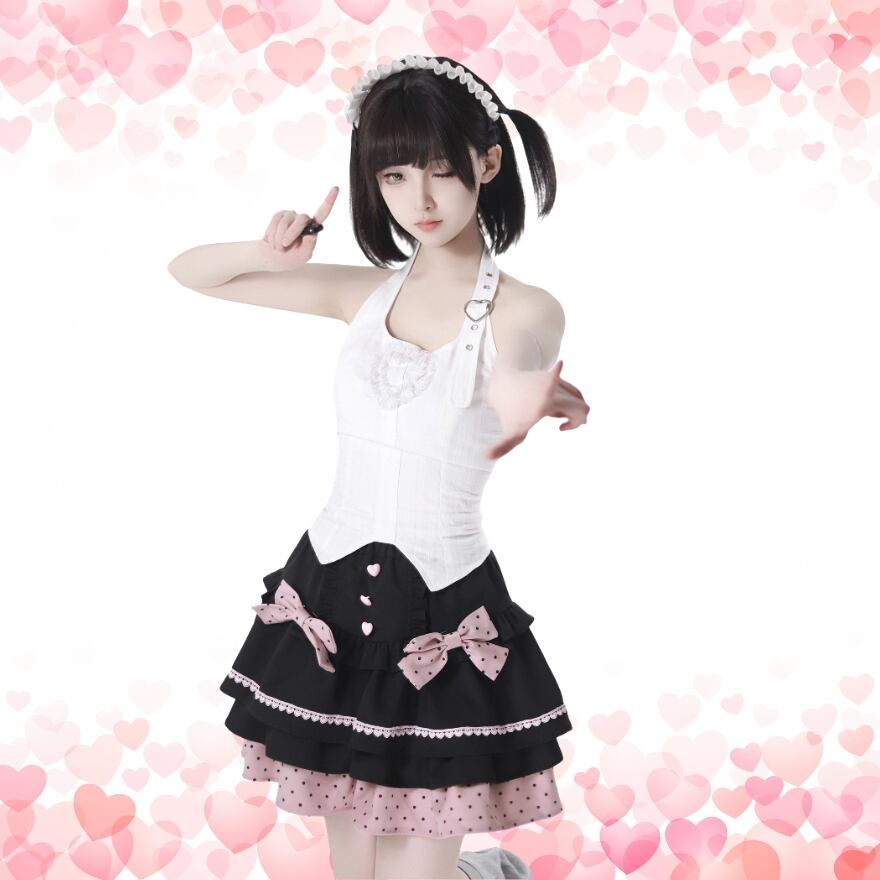 関連キーワード: #ロリィタ #ロリータファッション #甘ロリ #可愛い #ピンク #黒 #レースアップ #リボン #フリル #ドット柄 #フェミニン #デート #お出かけ #セットアップ