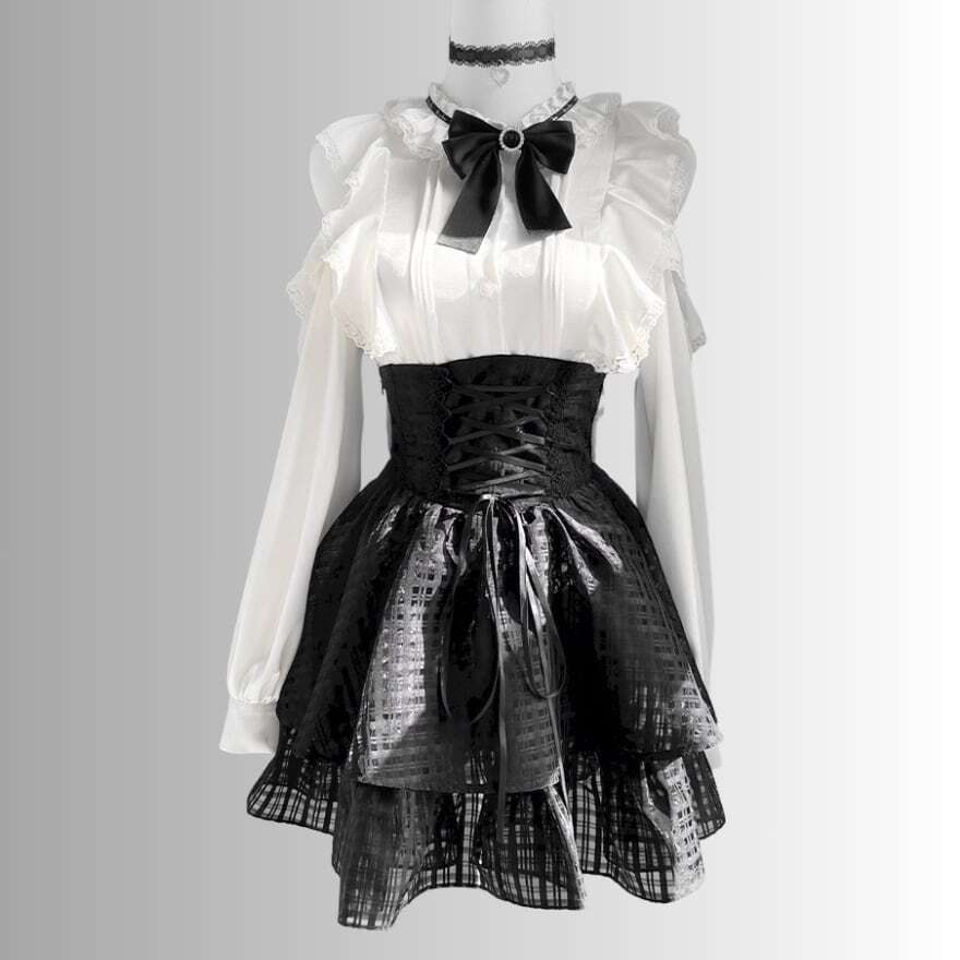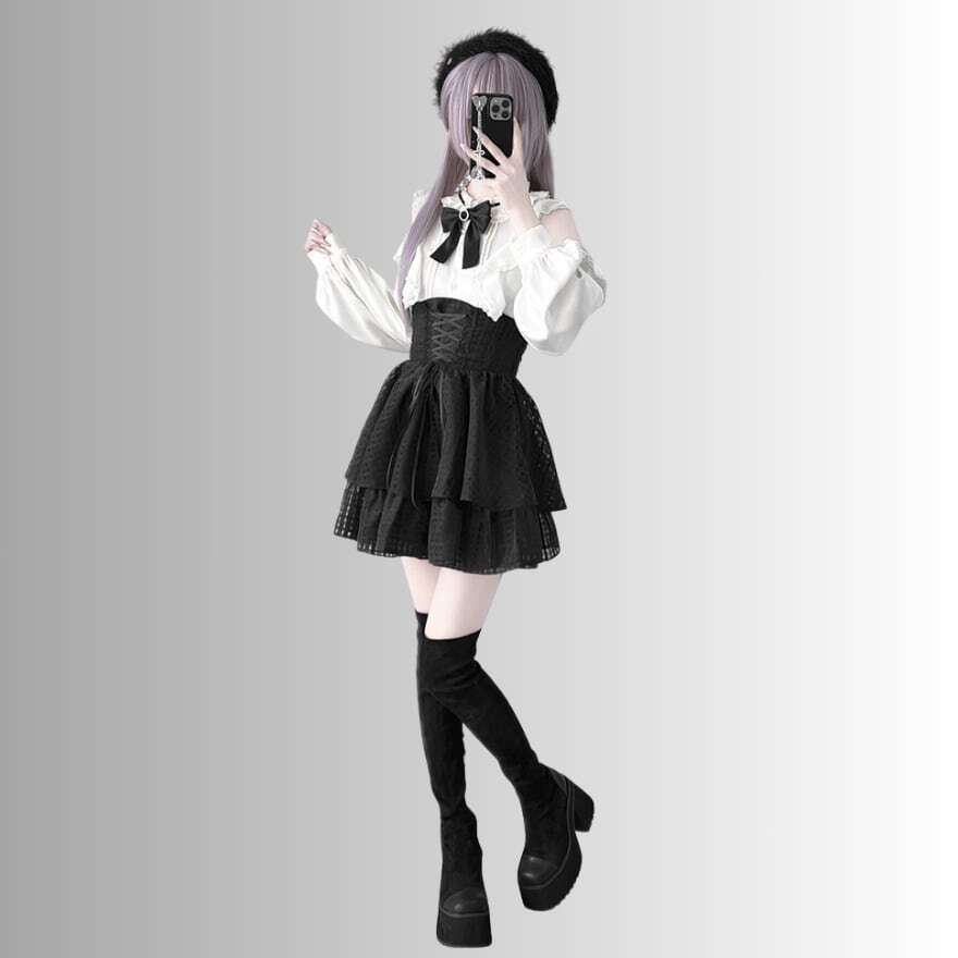 関連キーワード: #地雷系 #セットアップ #甘辛MIX #ブラウス #コルセット #スカート #フリル #地雷系女子