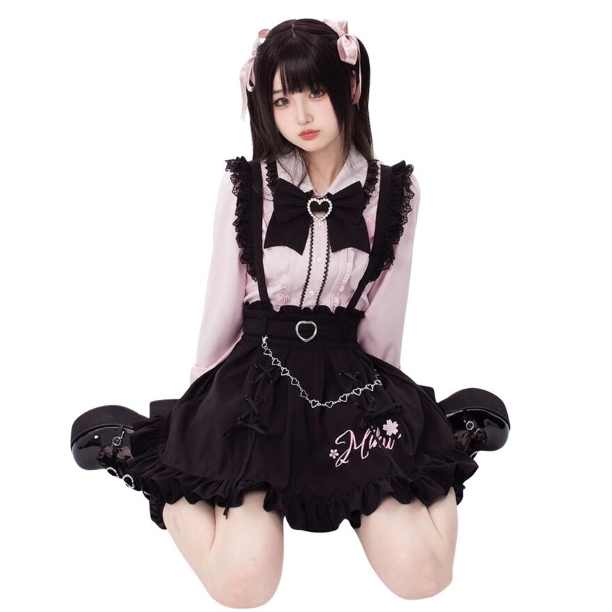 このスカートの最大の魅力は、ロリィタの甘いフリルやリボンと、地雷系のクールなチェーンや編み上げが完璧に融合している点です。 着るだけで、ドールのような可愛らしさと、エッジの効いた強い個性を同時に表現できます。