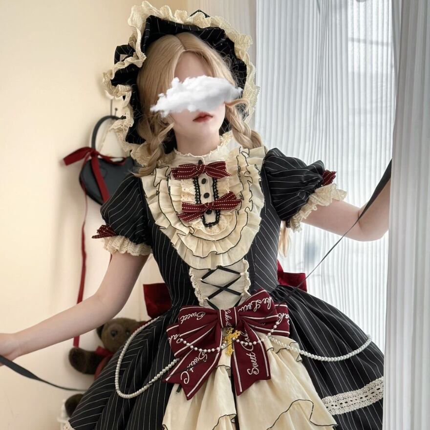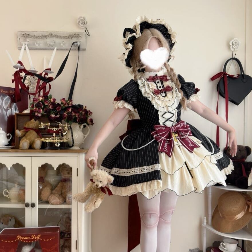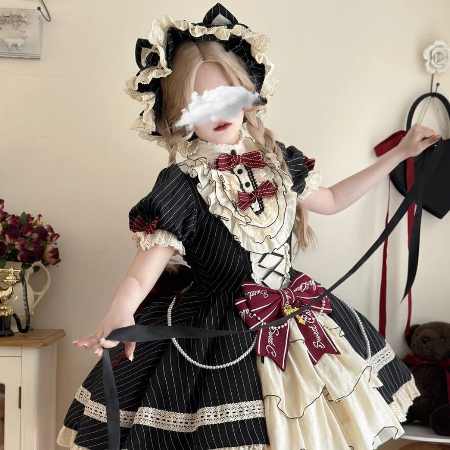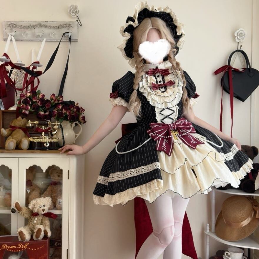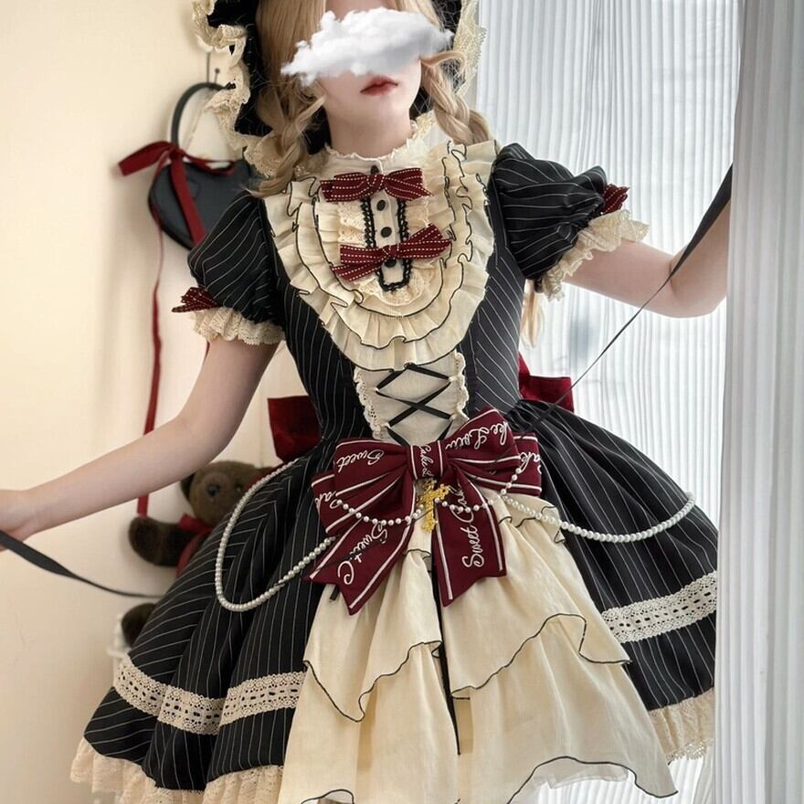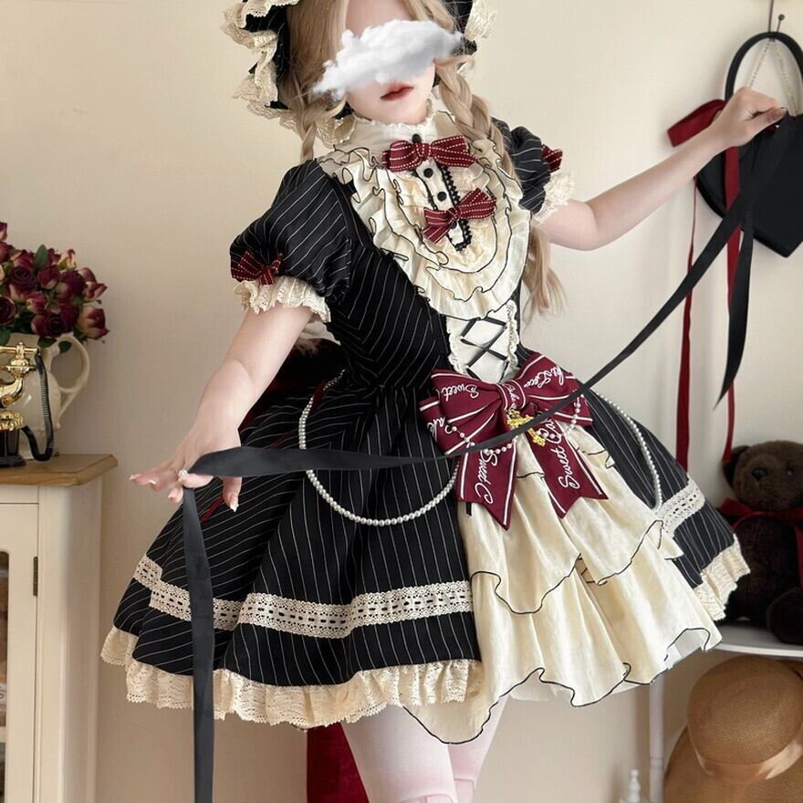 Alicestyle 甘ロリ Sweet Cake lolita ワンピース ストライプ ブラック