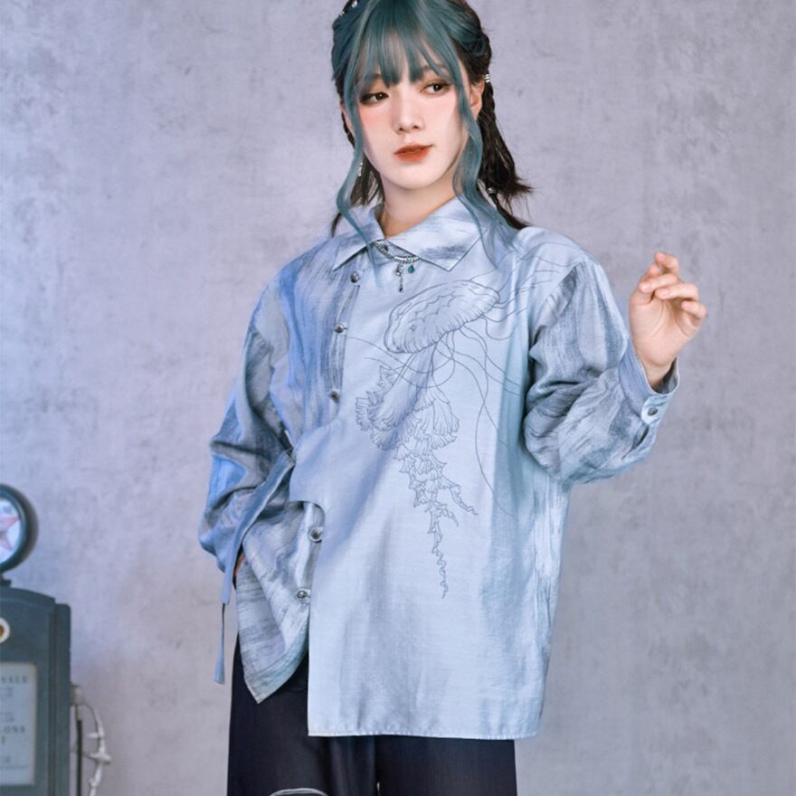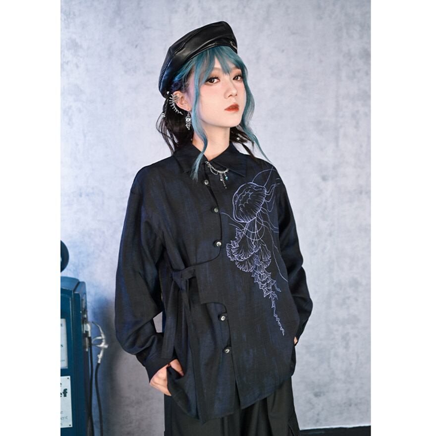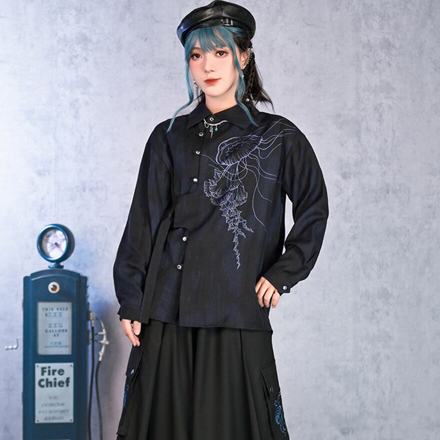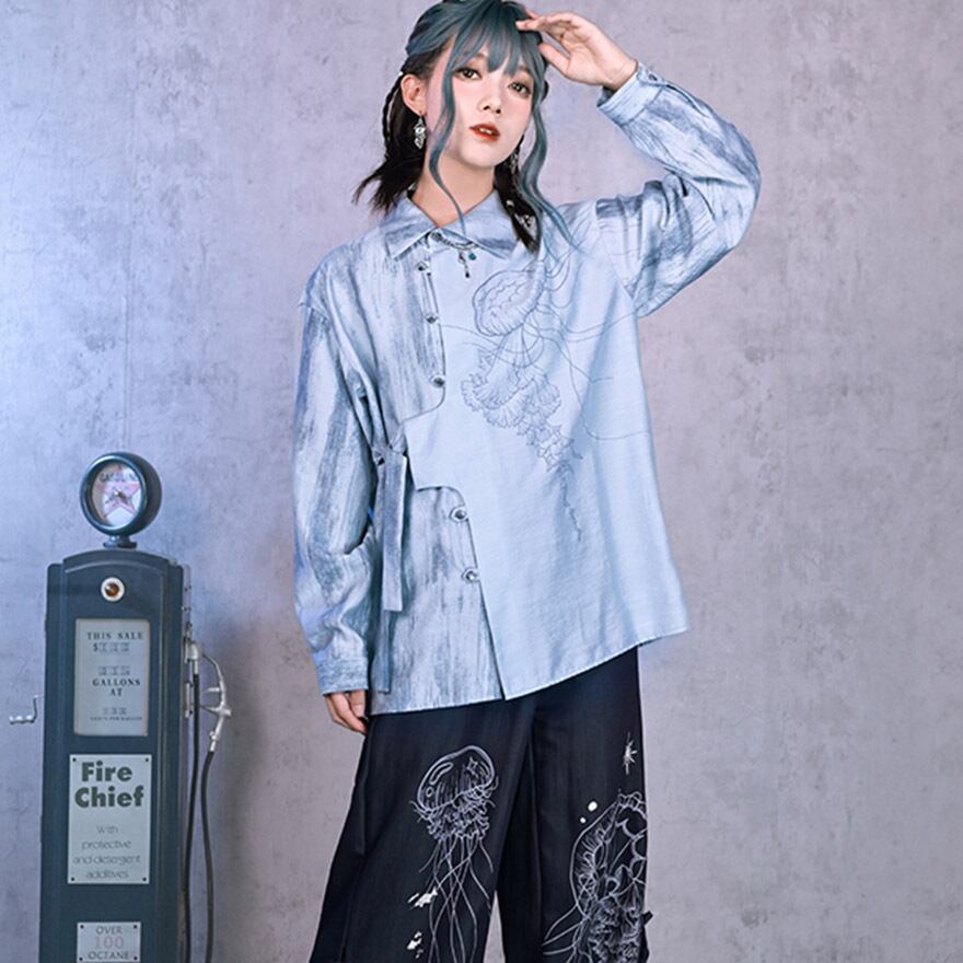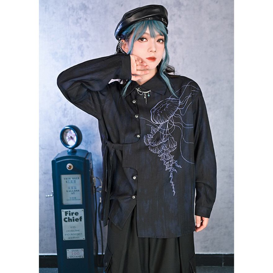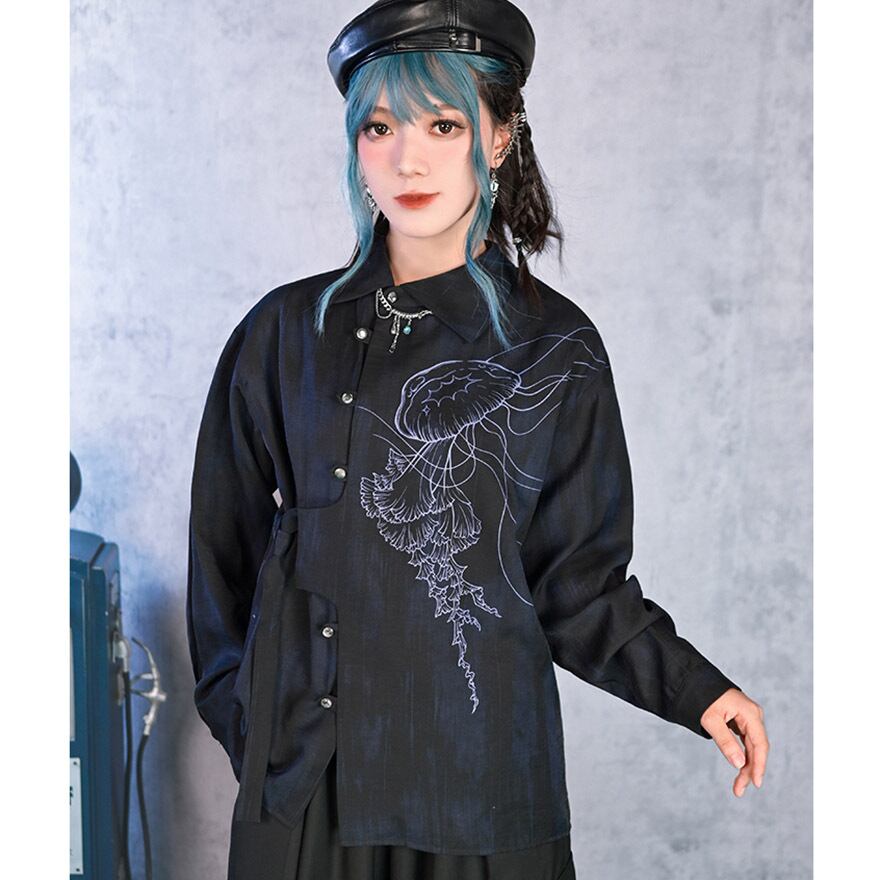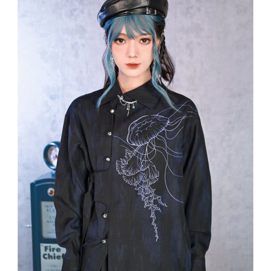 関連キーワード: #デザインシャツ #モード系 #サブカル #ストリートファッション #クラゲ #海月 #プリントシャツ #アシンメトリー #個性的 #ユニセックス #オーバーサイズ #アート #幻想的