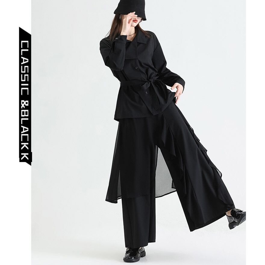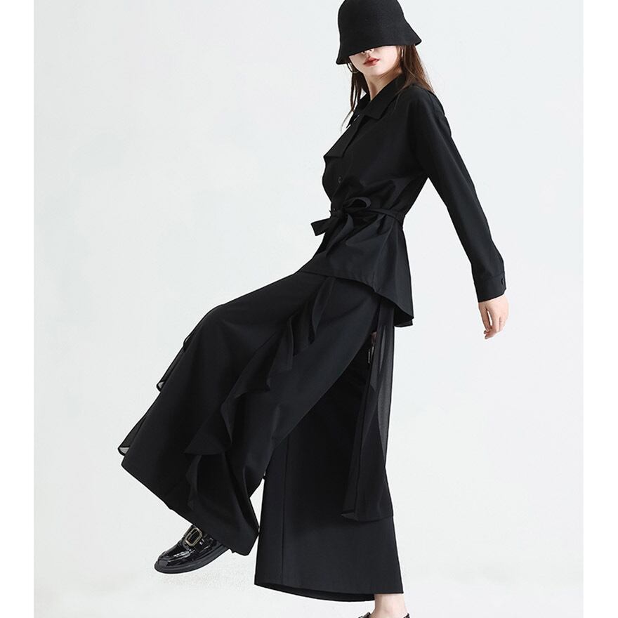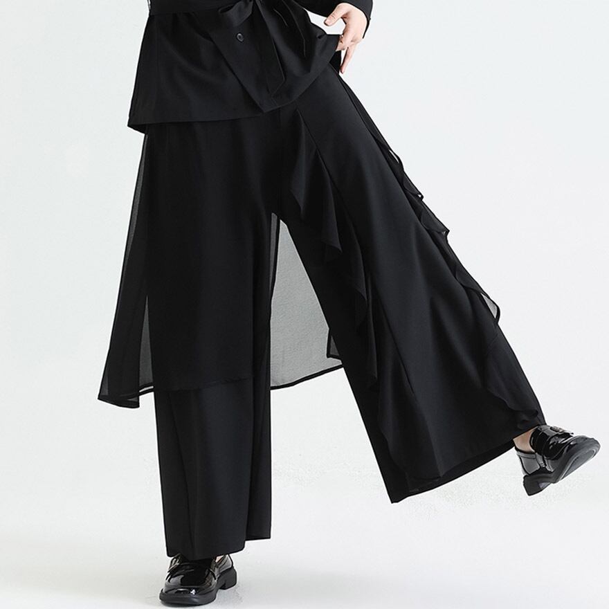 関連キーワード: #ワイドパンツ #モード系 #ゴシック #ストリートファッション #アシンメトリー #フリル #レイヤード #個性的 #デザインパンツ #黒コーデ #大人こなれ感 #アラサーファッション #スカートパンツ