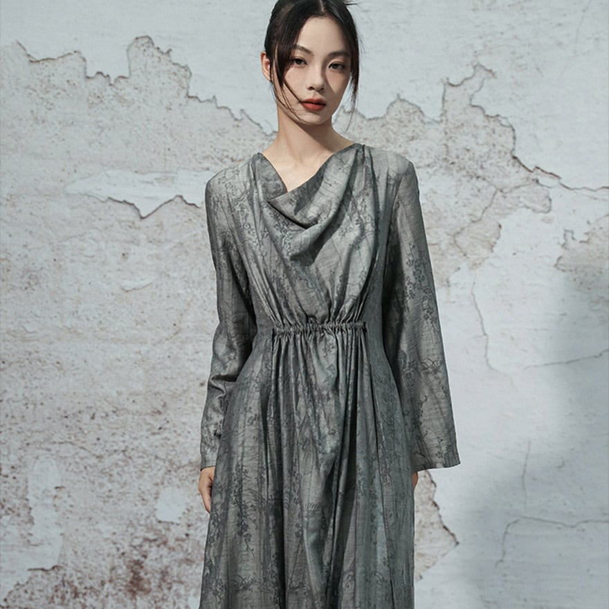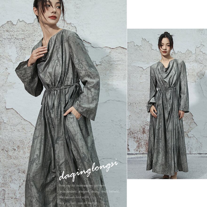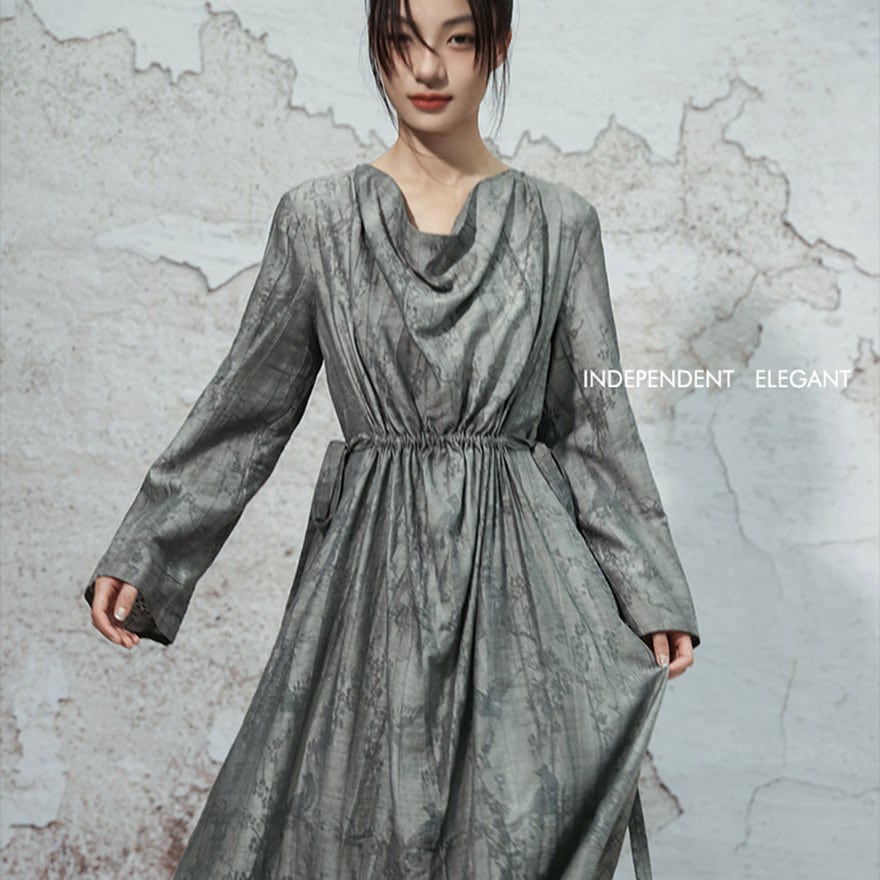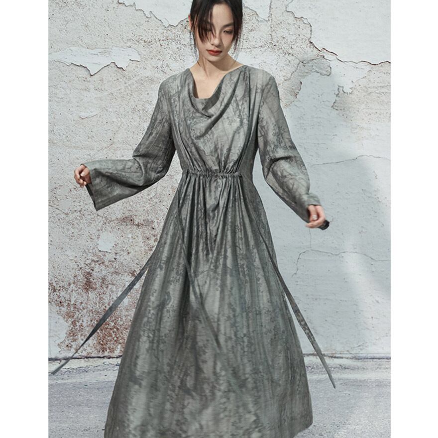 関連キーワード: #チャイナ風 #ワンピース #ロングワンピース #モード系 #サブカル #オリエンタル #水墨画 #ドレープネック #個性的 #大人コーデ #きれいめ #お呼ばれドレス #秋服 #アラサーファッション