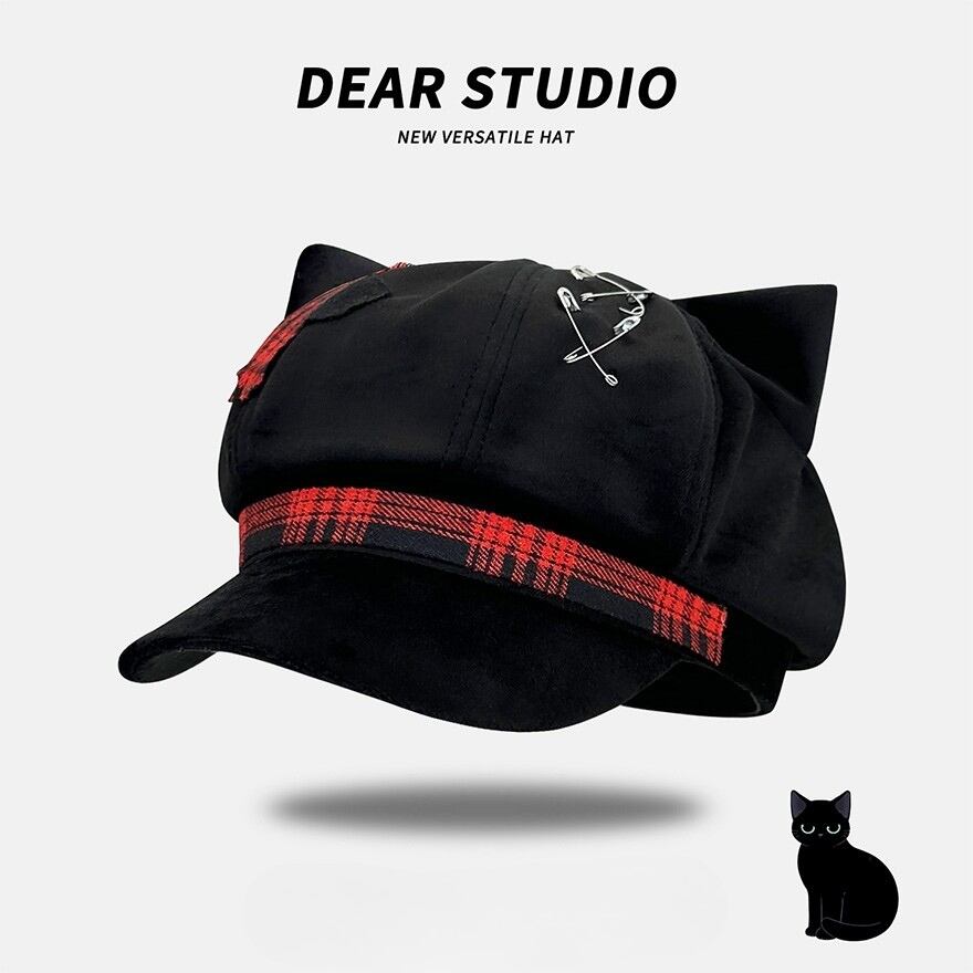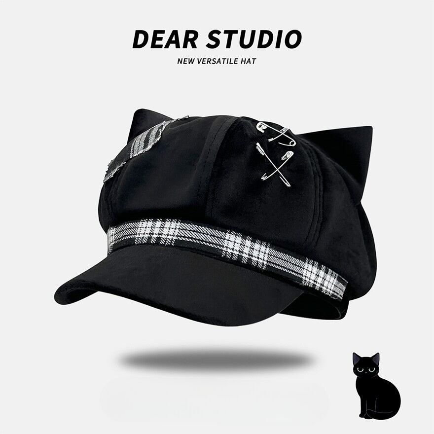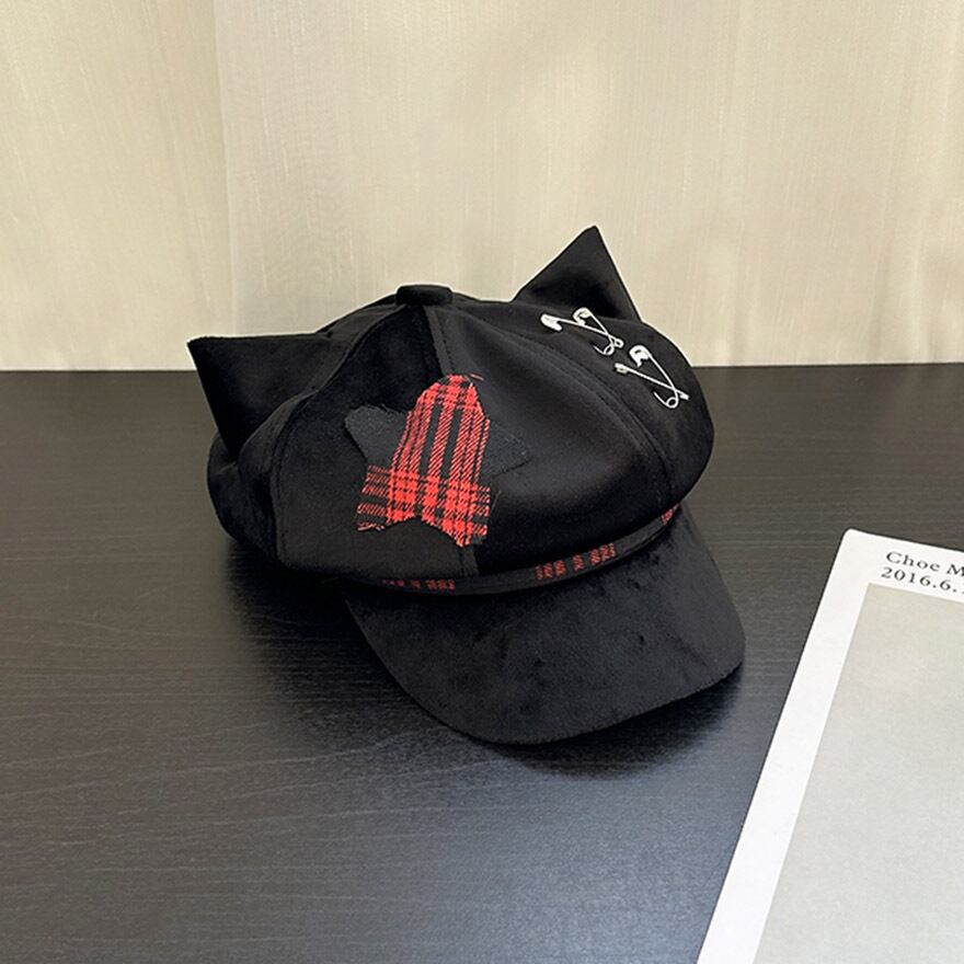 定番のキャスケットに、キュートな猫耳とパンキッシュなディテールを詰め込んだ、個性派デザインの帽子です。