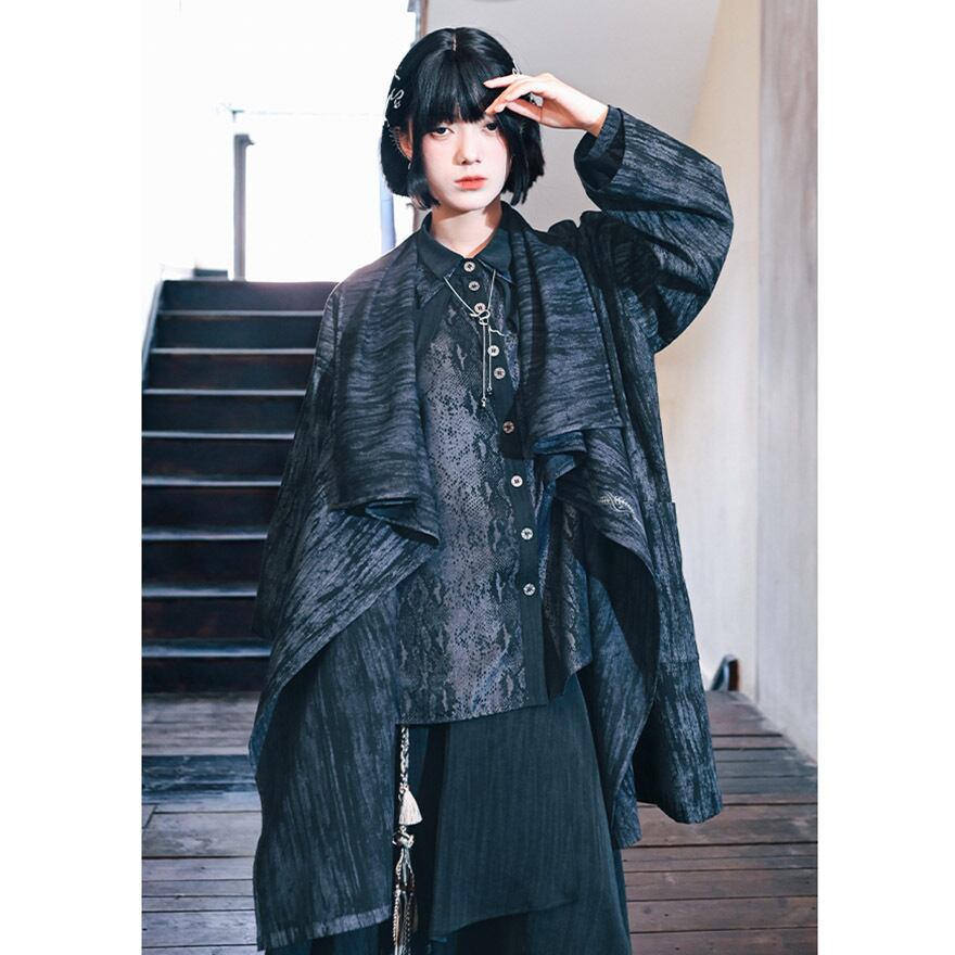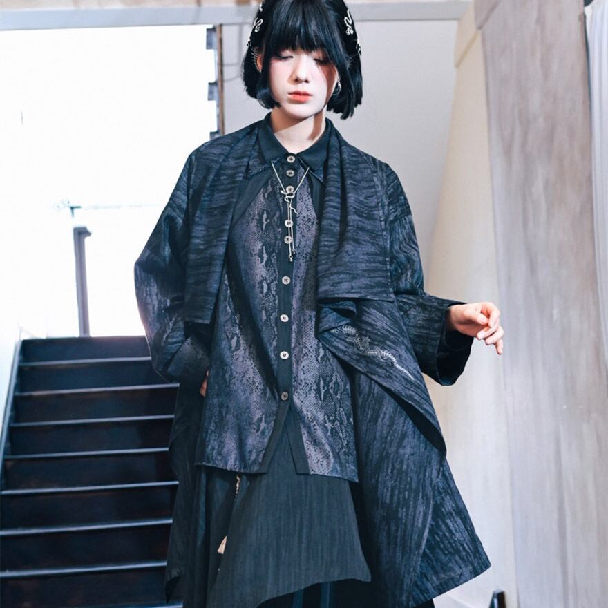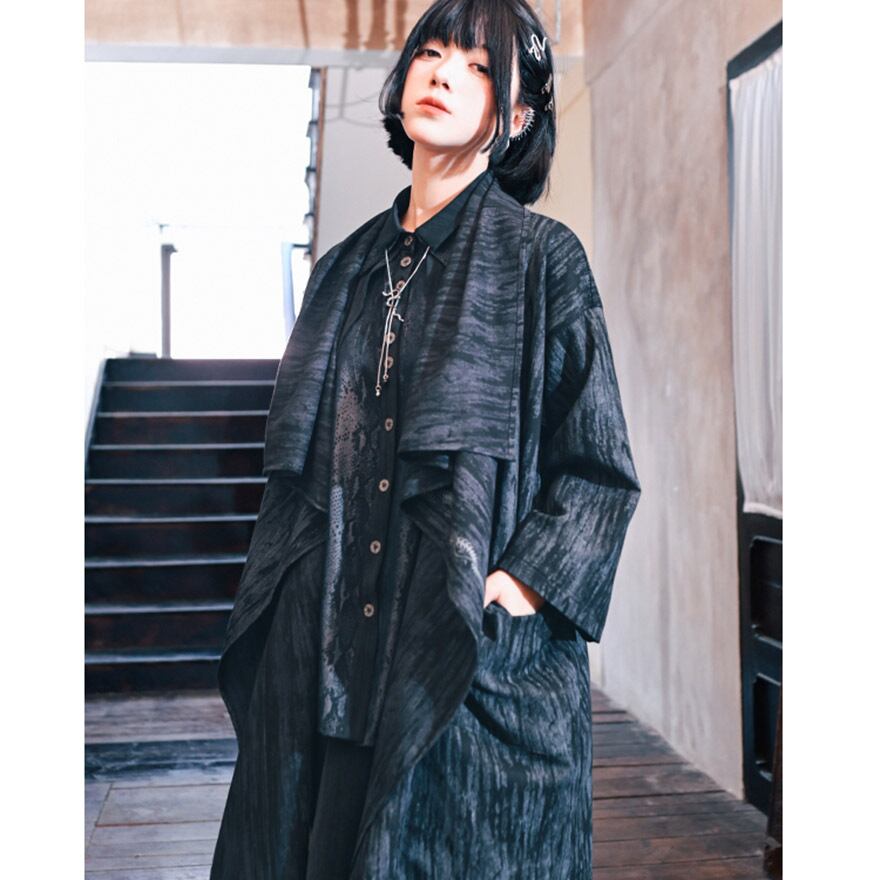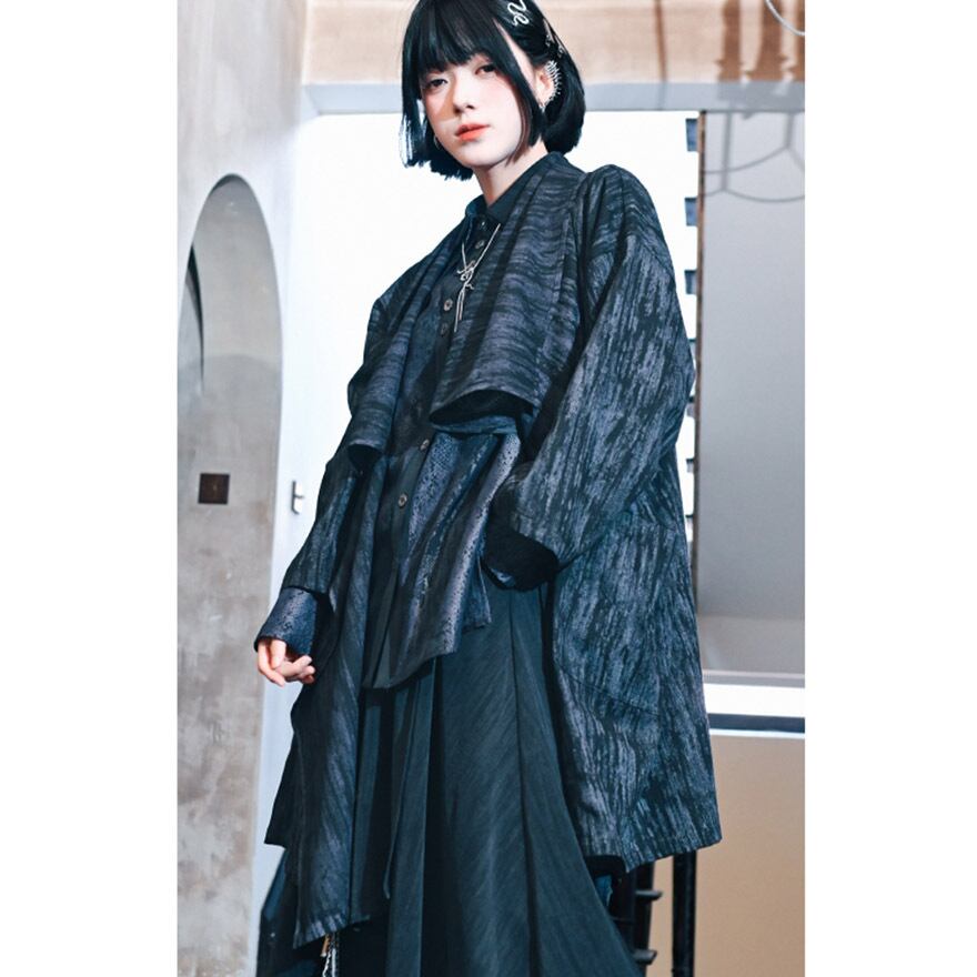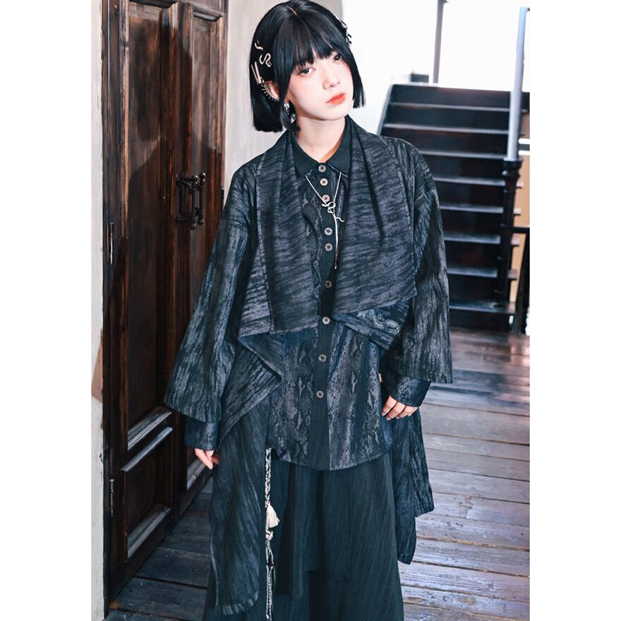 関連キーワード: #チャイナ風 #ジャケット #羽織り #モード系 #ストリートファッション #サブカル #アシンメトリー #個性的 #刺繍 #水墨画 #ユニセックス #アラサーファッション #大人コーデ #ドロップショルダー