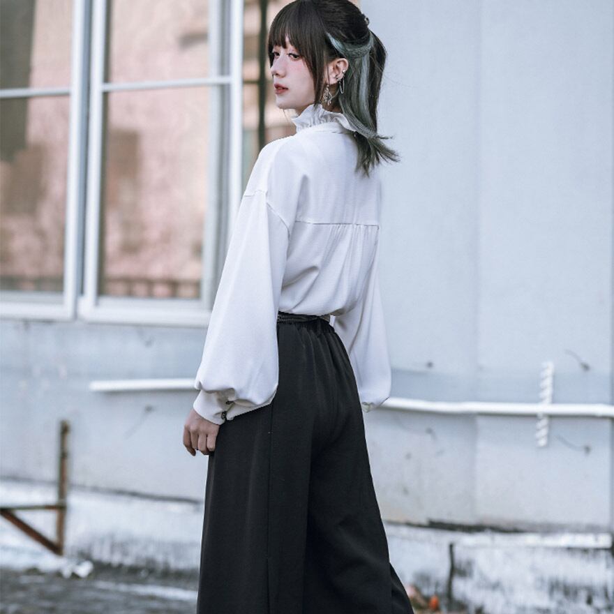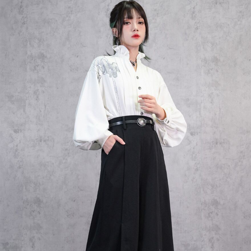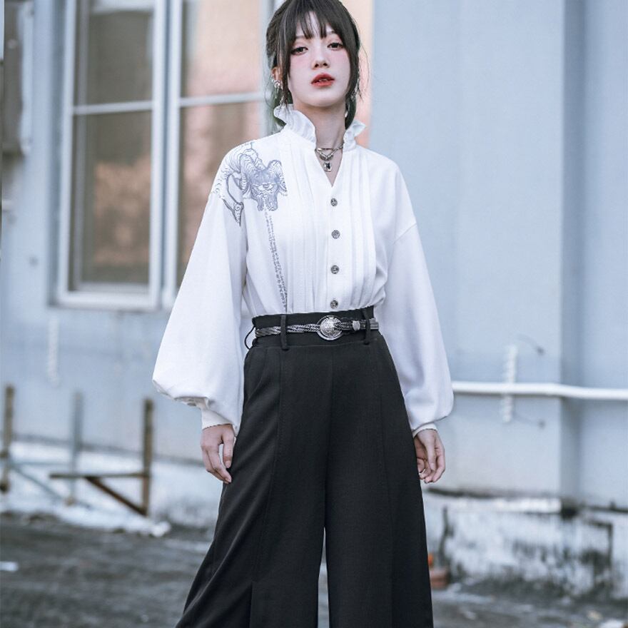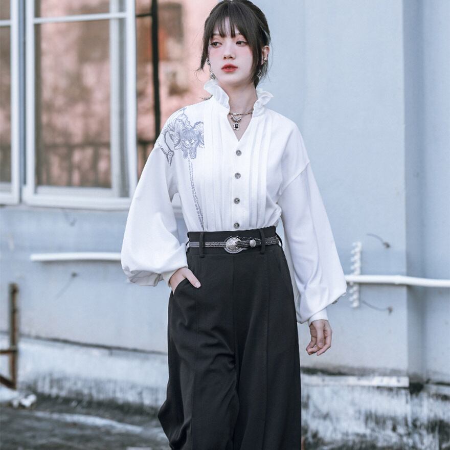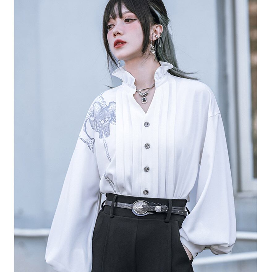 関連キーワード: #中華風 #ブラウス #デザインブラウス #モード系 #ストリートファッション #サブカル #個性的 #アート #プリント #バルーンスリーブ #フリルネック #とろみブラウス #大人かわいい #きれいめ #アラサーファッション