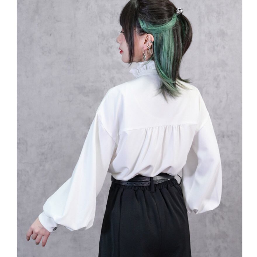 チャイナ風ゴシック ブラウス プリーツ バルーンスリーブ とろみ