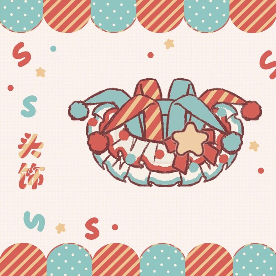 小さなポンポンや星のモチーフが付いており、賑やかで楽しい雰囲気を演出します。