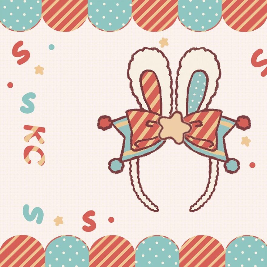 可愛らしいウサ耳とポップなデザインが、顔周りを華やかに彩ります。