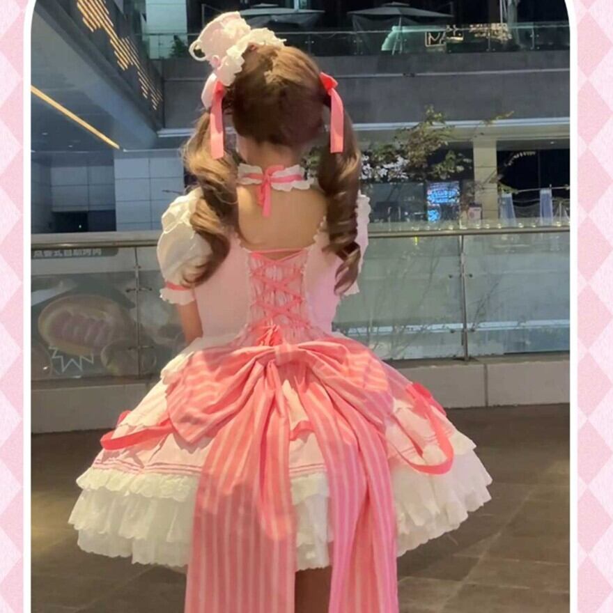 夢かわいい ワンピース バックリボン パステルピンク コンカフェ衣装 イベント プリンセス仮装