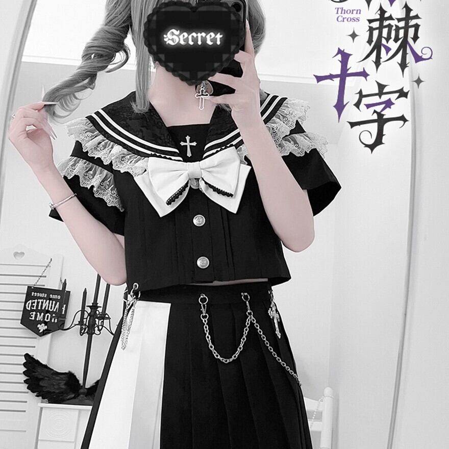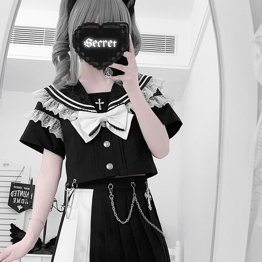 関連キーワード: #ロリータ #ゴスロリ #セーラー #セットアップ #モノトーン #ゴシック #クール #可愛い