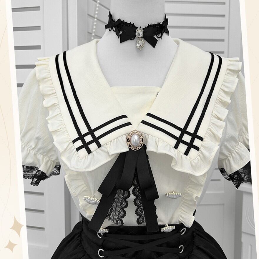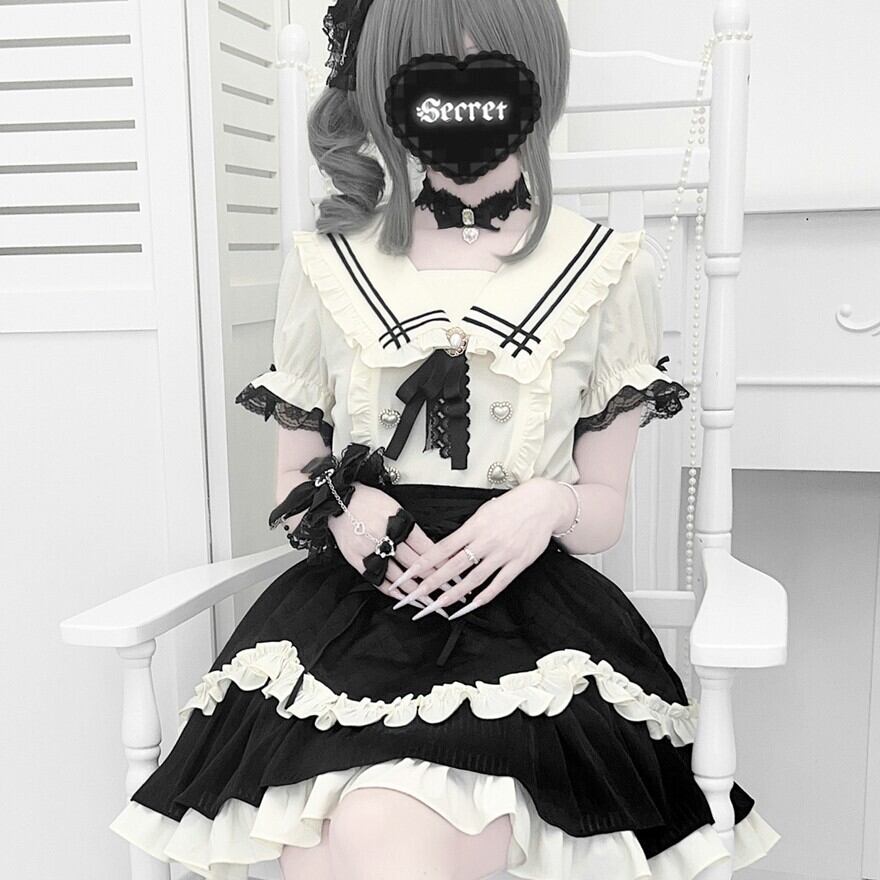 関連キーワード: #ロリータ #クラロリ #セットアップ #モノトーン #セーラー #レース #エレガント #可愛い