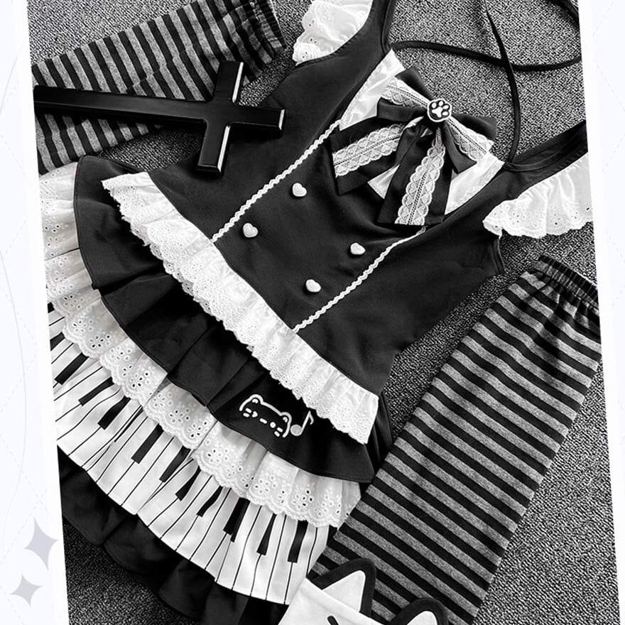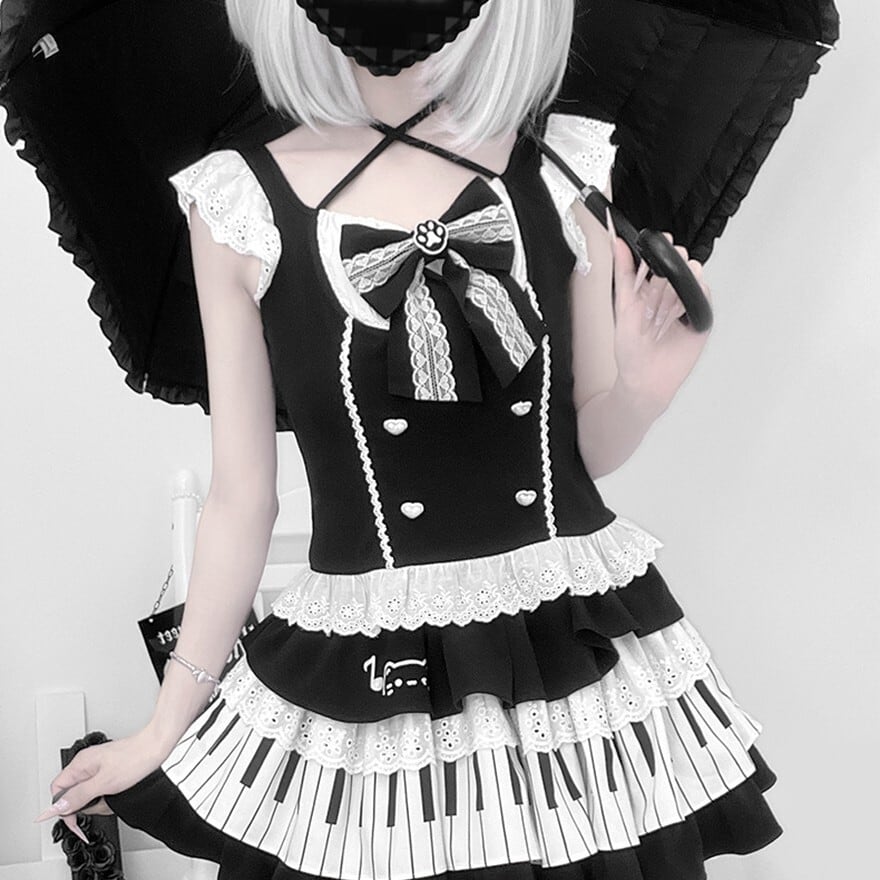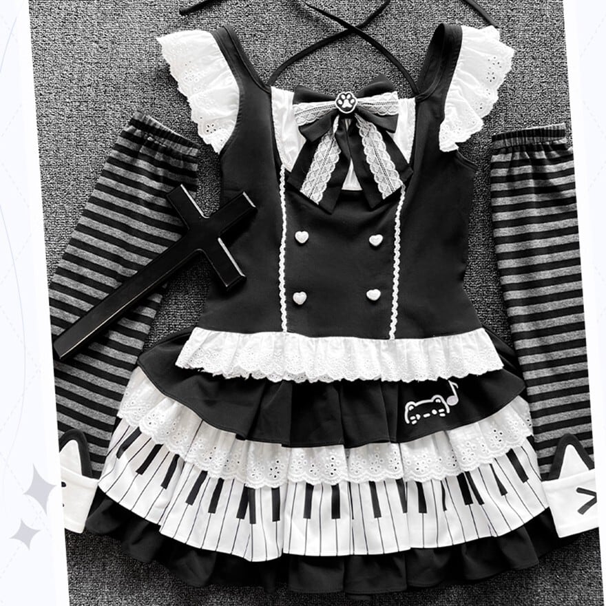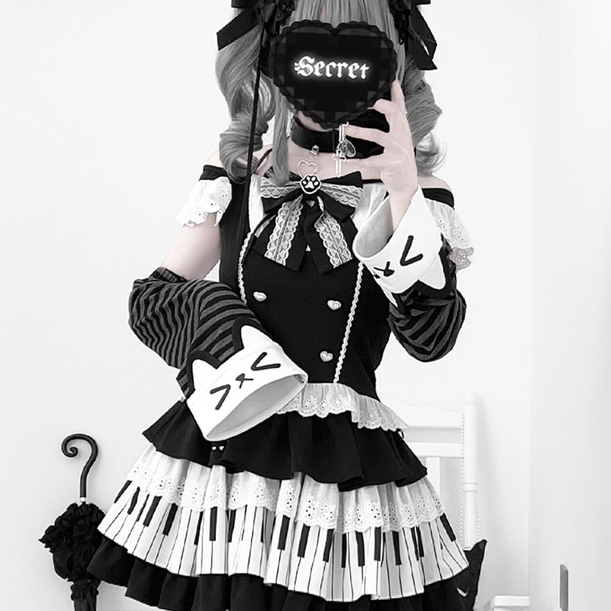 関連キーワード: #ロリータ #ゴスロリ #セットアップ #モノトーン #鍵盤 #ピアノ #ユニーク #可愛い