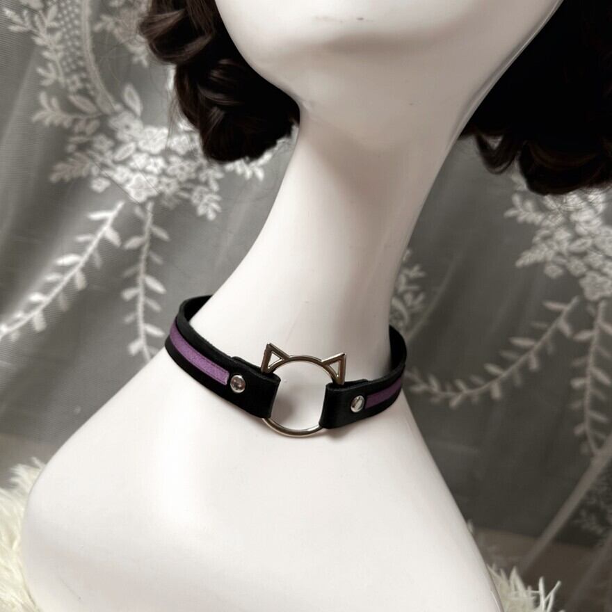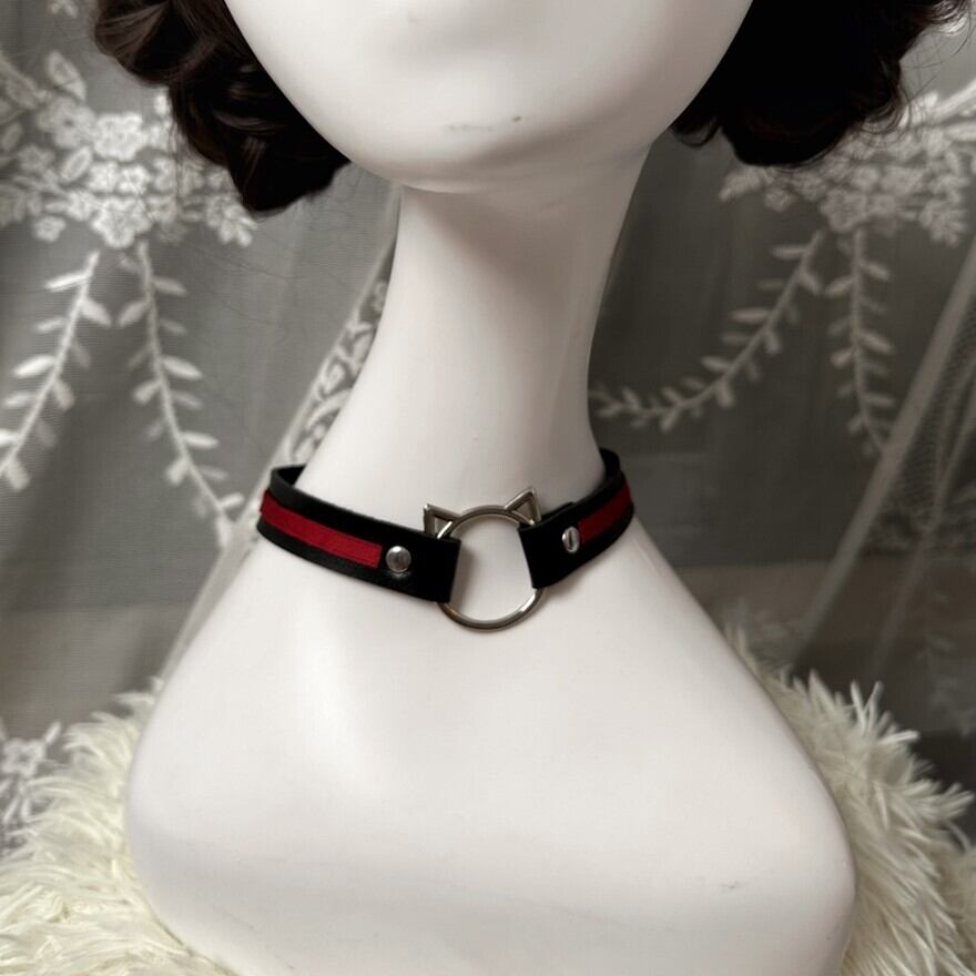 太めのレザー調ベルトに、中央に猫耳のモチーフがついたリングがあしらわれたチョーカーです。