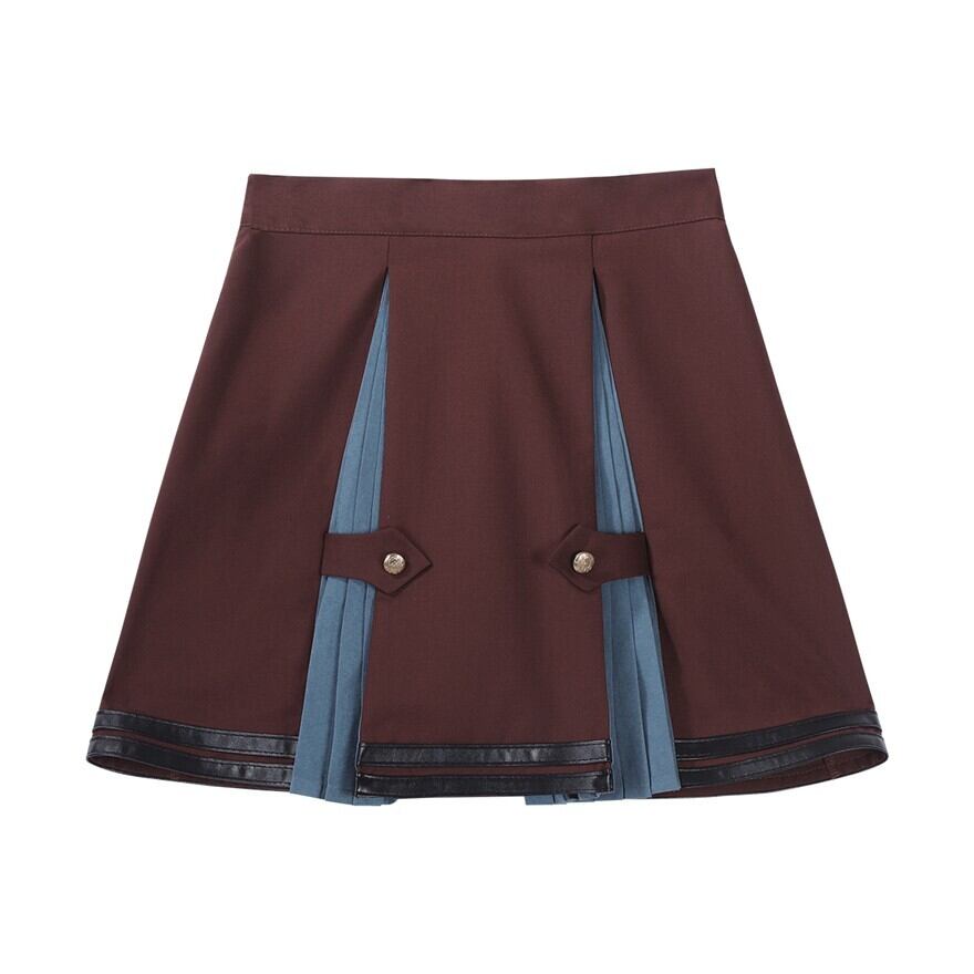 アシンメトリーなヘムラインのスカートは、足元の動きを軽やかに見せ、アクティブな印象を与えます。