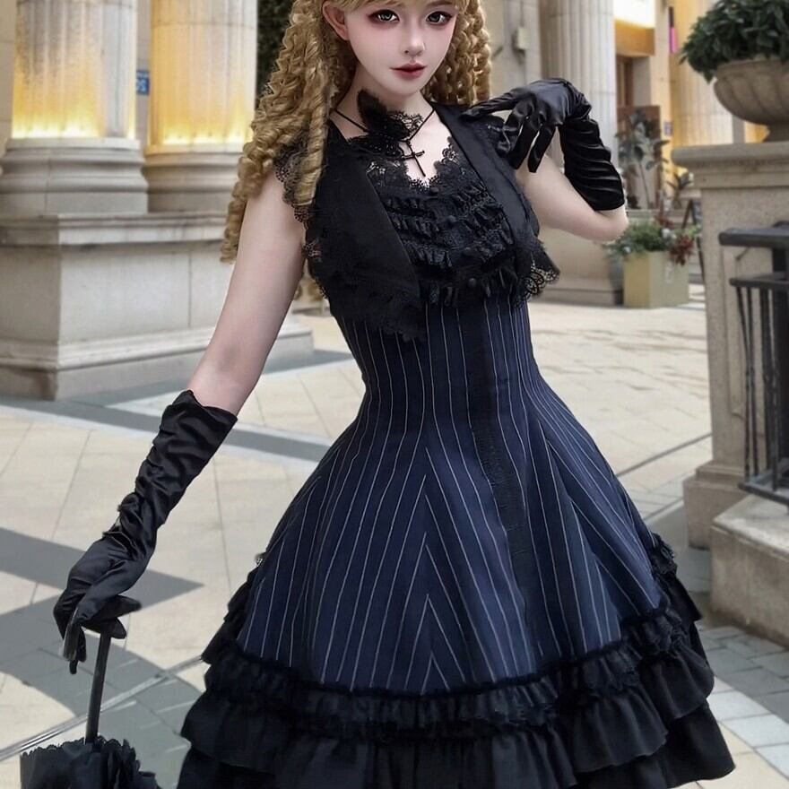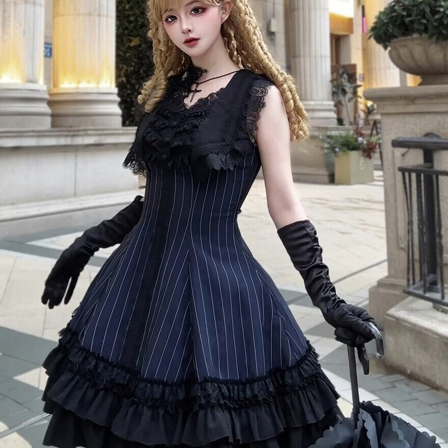 レースアップブーツや網タイツ、ヘッドドレスなどを合わせれば、より完璧なゴシックスタイルが完成します。