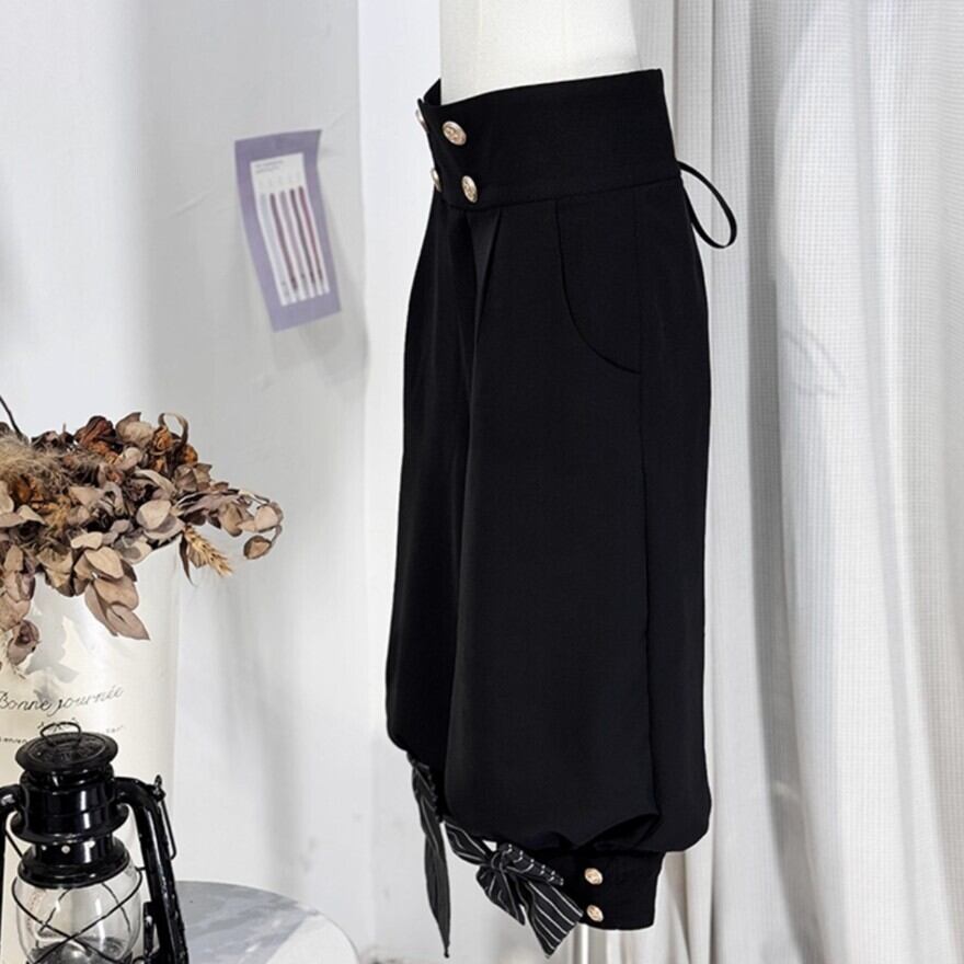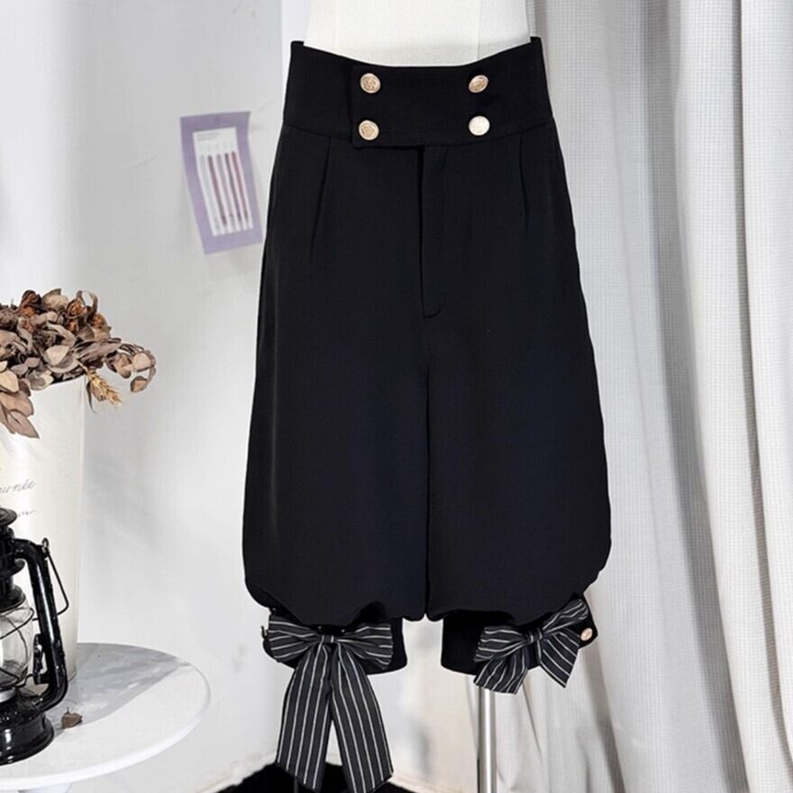 パフスリーブの上着と、ふんわりとしたシルエットのズボンが、上品でドーリーな印象を与えます。カチューシャと付け袖、蝶結びもセットになっており、コーディネートをさらに華やかに彩ります。