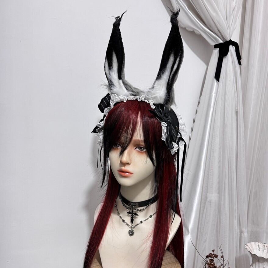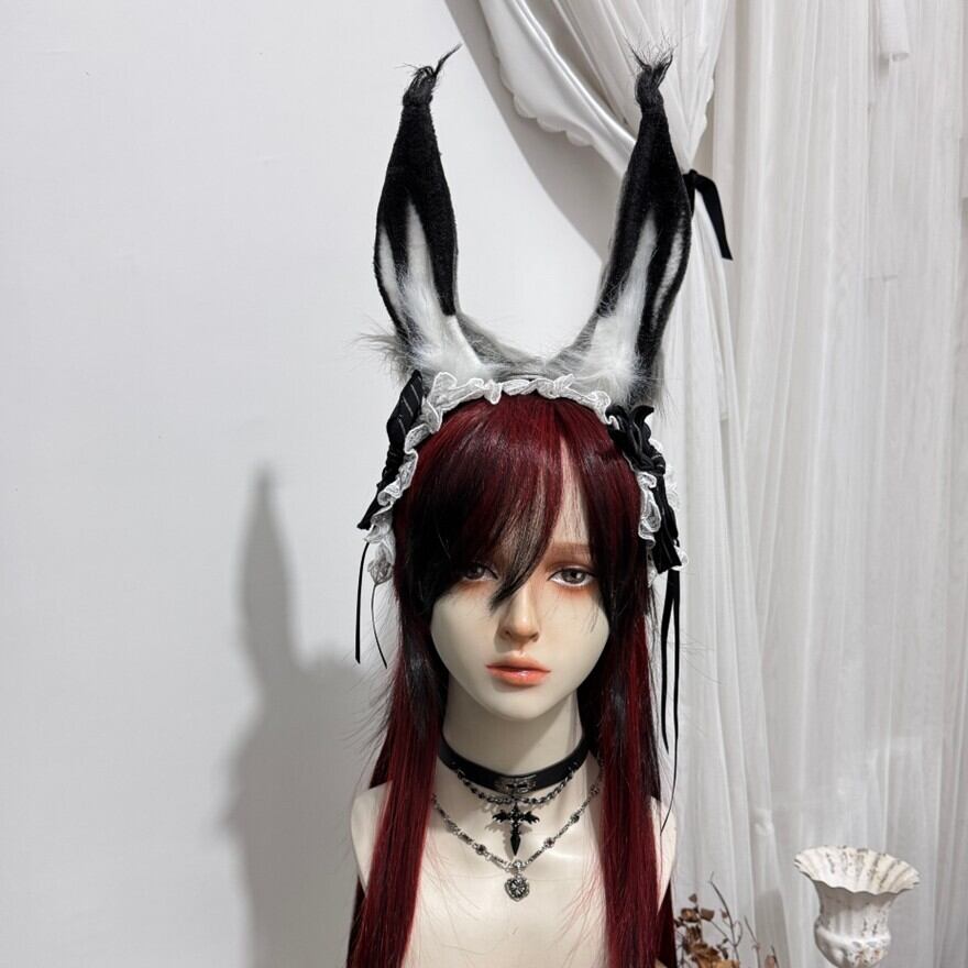 ブラックとオフホワイトのツートンカラーが目を引く、うさぎ耳のカチューシャです。