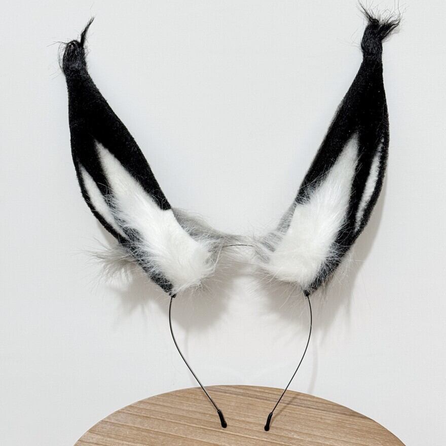 耳の内側はふわふわの白い毛並み、外側はなめらかな黒い毛並みで、立体感のあるデザインです。