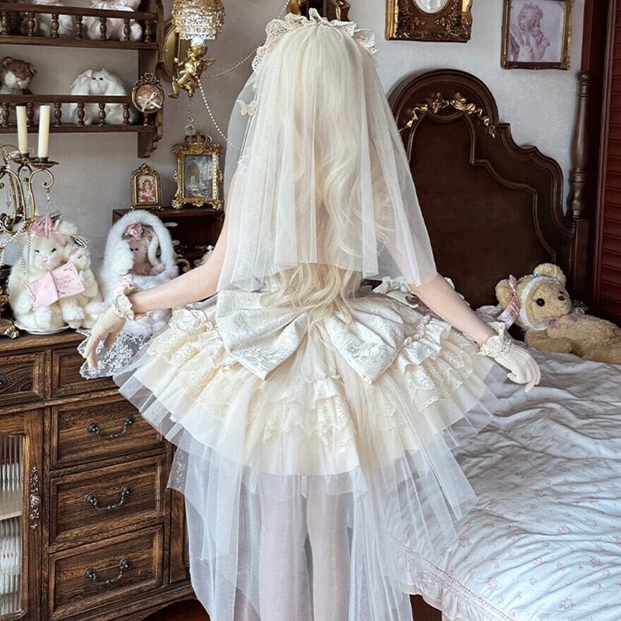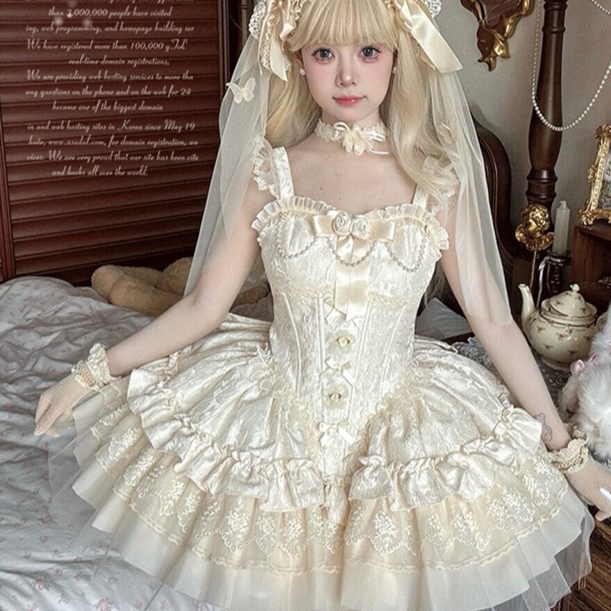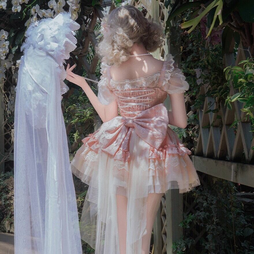 ロリィタ プリンセスドレス ジャンパースカート フロントリボン バックリボン付き ふんわり レイヤード コンカフェ衣装