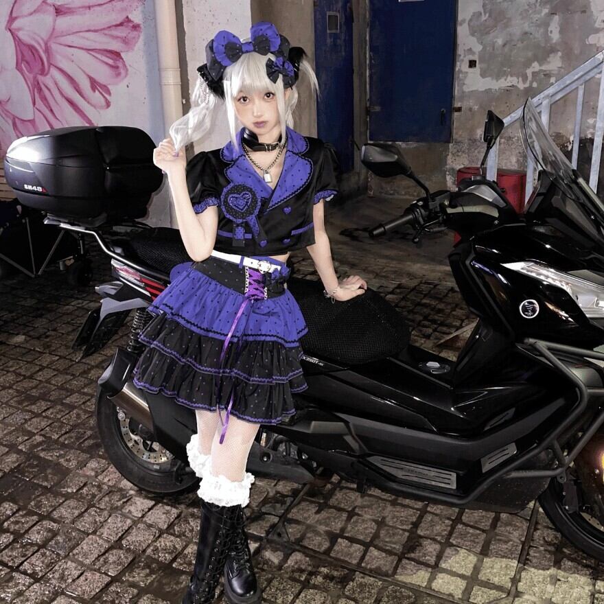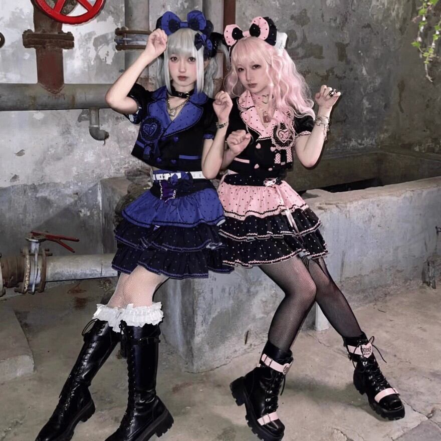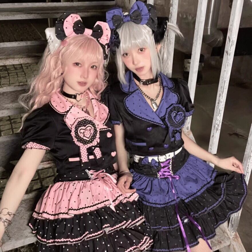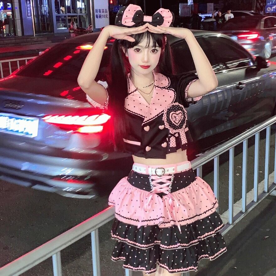水玉のケーキスカートがかわいいアイドル系上下セットアップです。