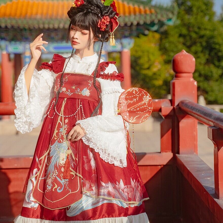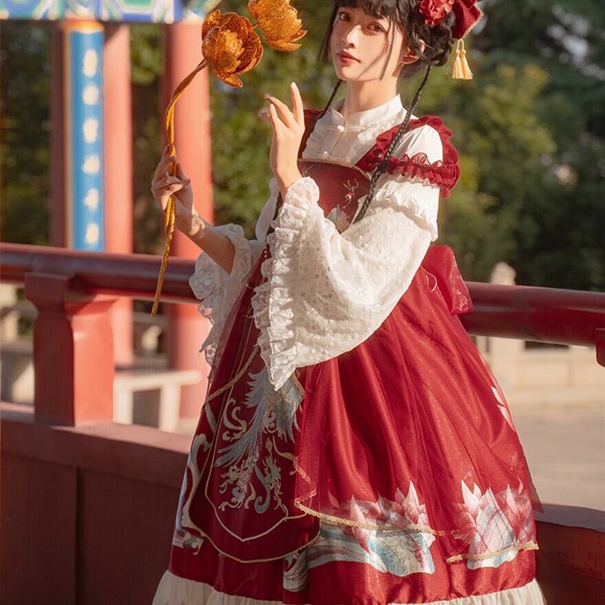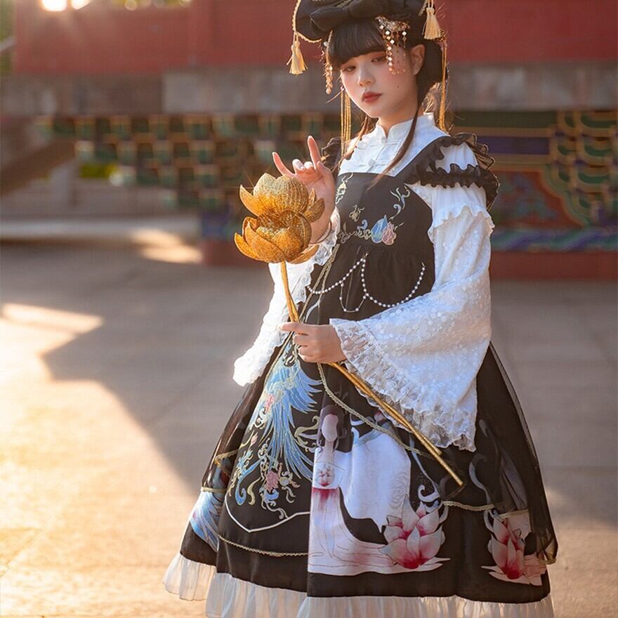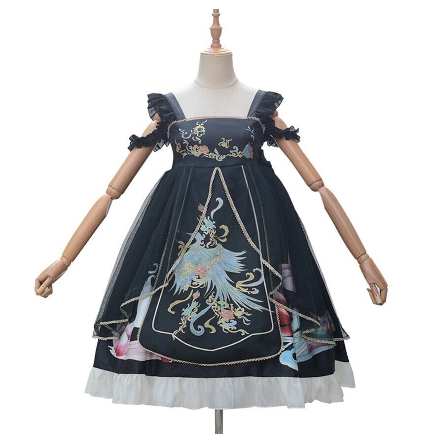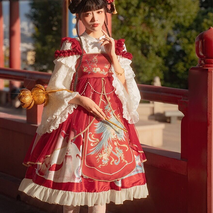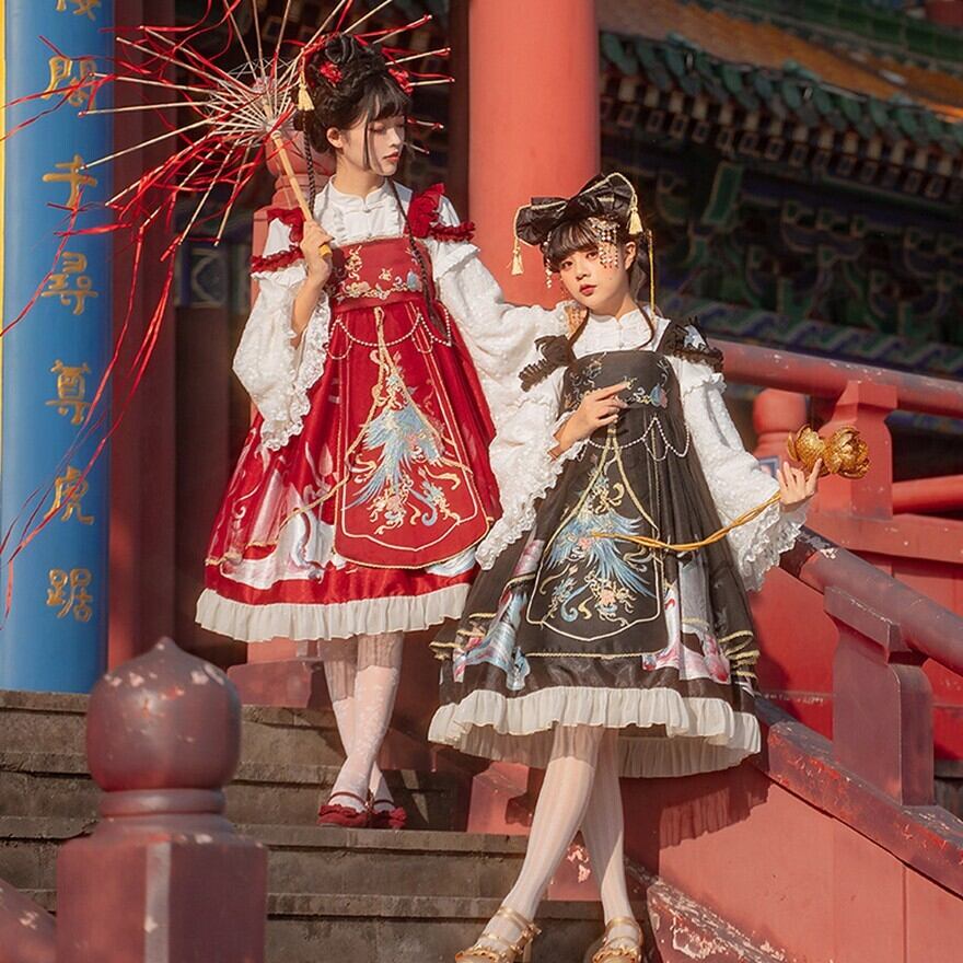 中華ロリィタ ジャンパースカート レトロ 鳳凰柄 姫ロリ お茶会