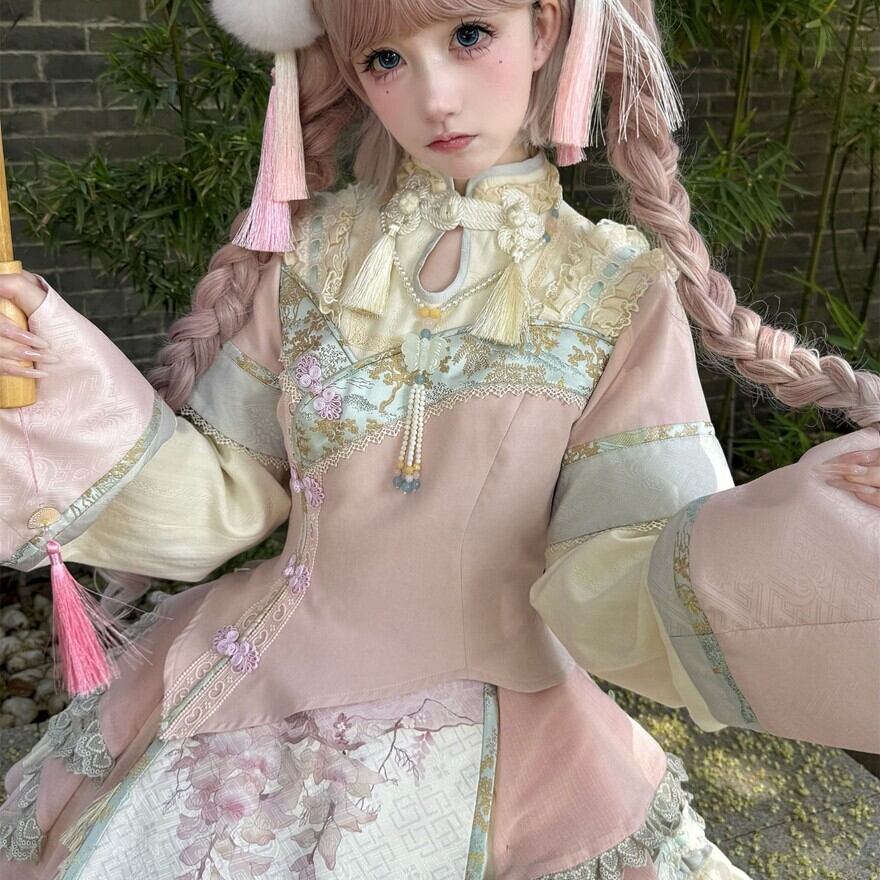 【予約商品 12月下旬出荷】 中華ロリィタ ドレス ツーピース タッセル 姫袖 ライブ イベント衣装 コンカフェ