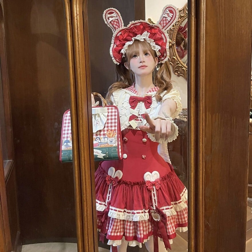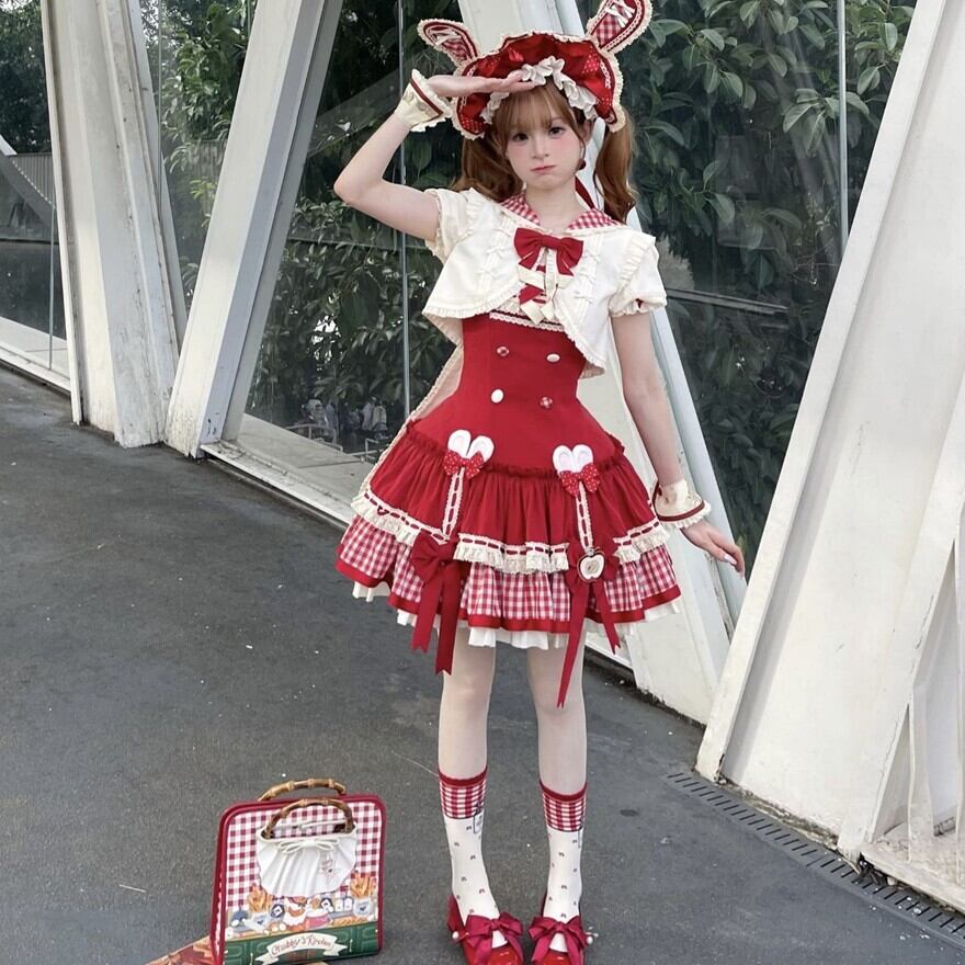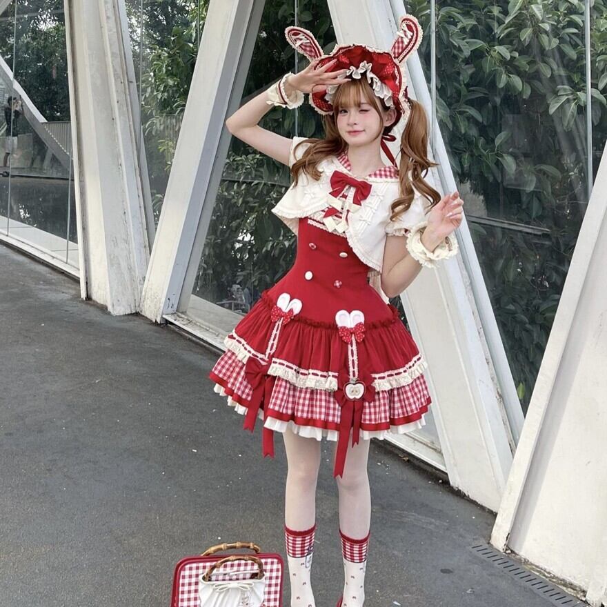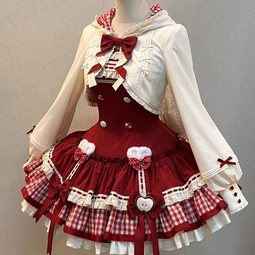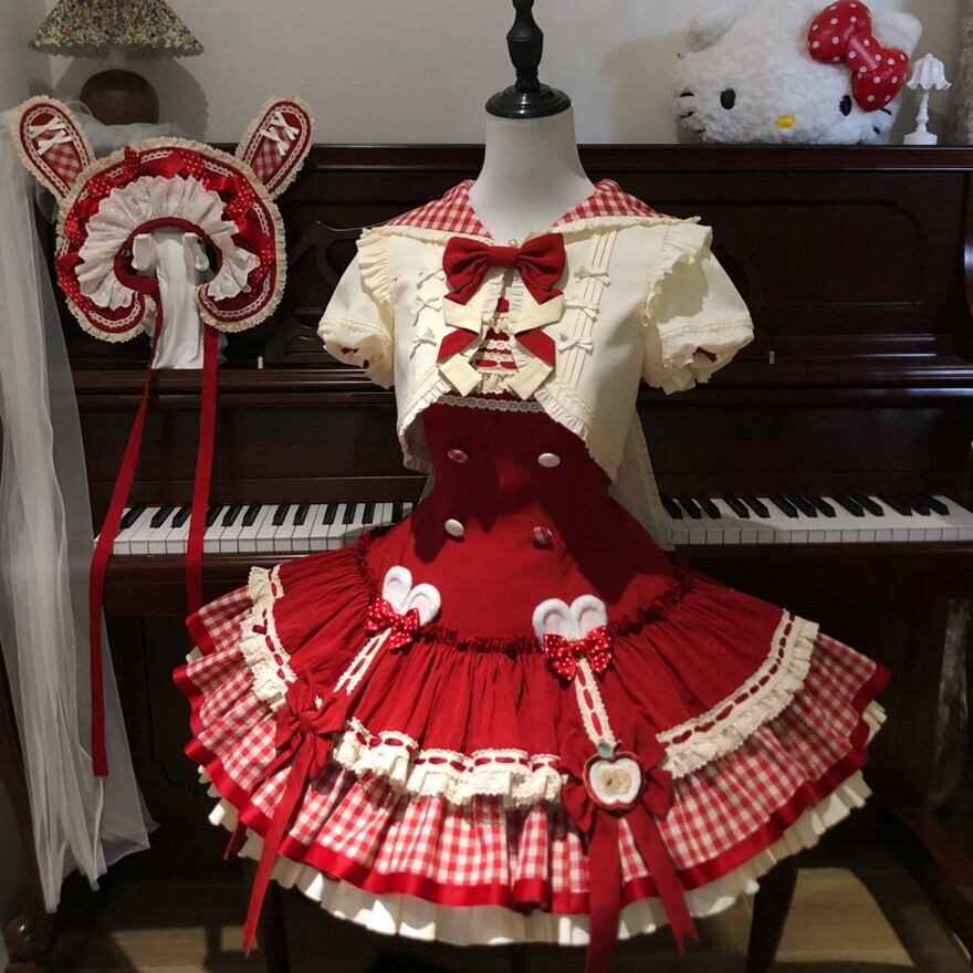 関連キーワード: #ロリータ #ロリータファッション #甘ロリ #ジャンパースカート #ジャケット #セットアップ #うさ耳 #りんご #ギンガムチェック #可愛い
