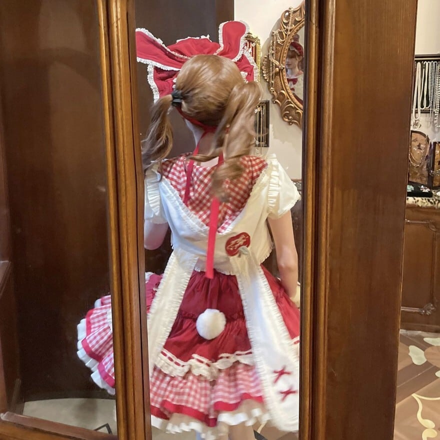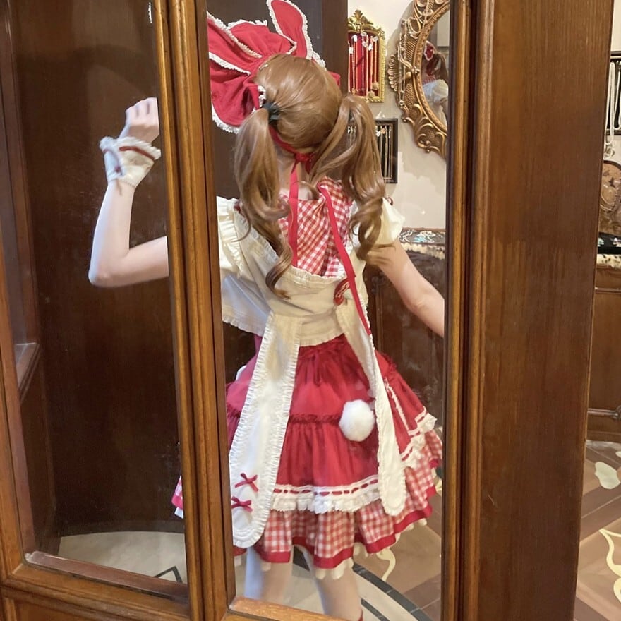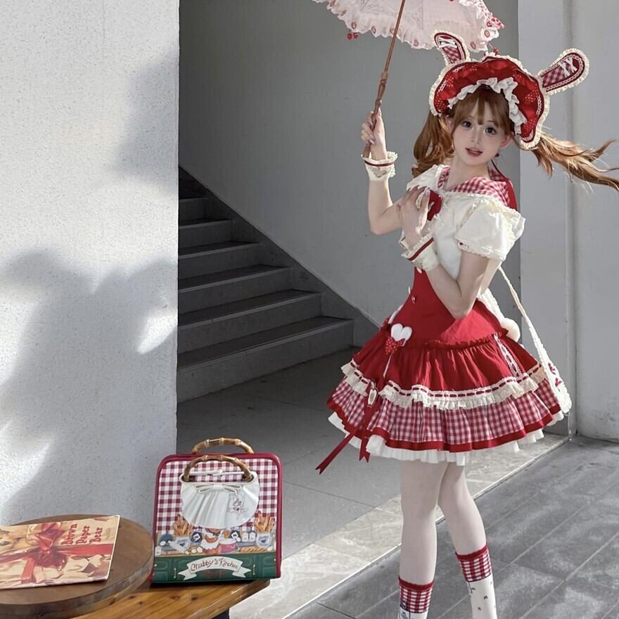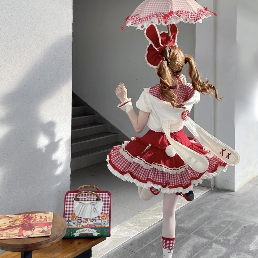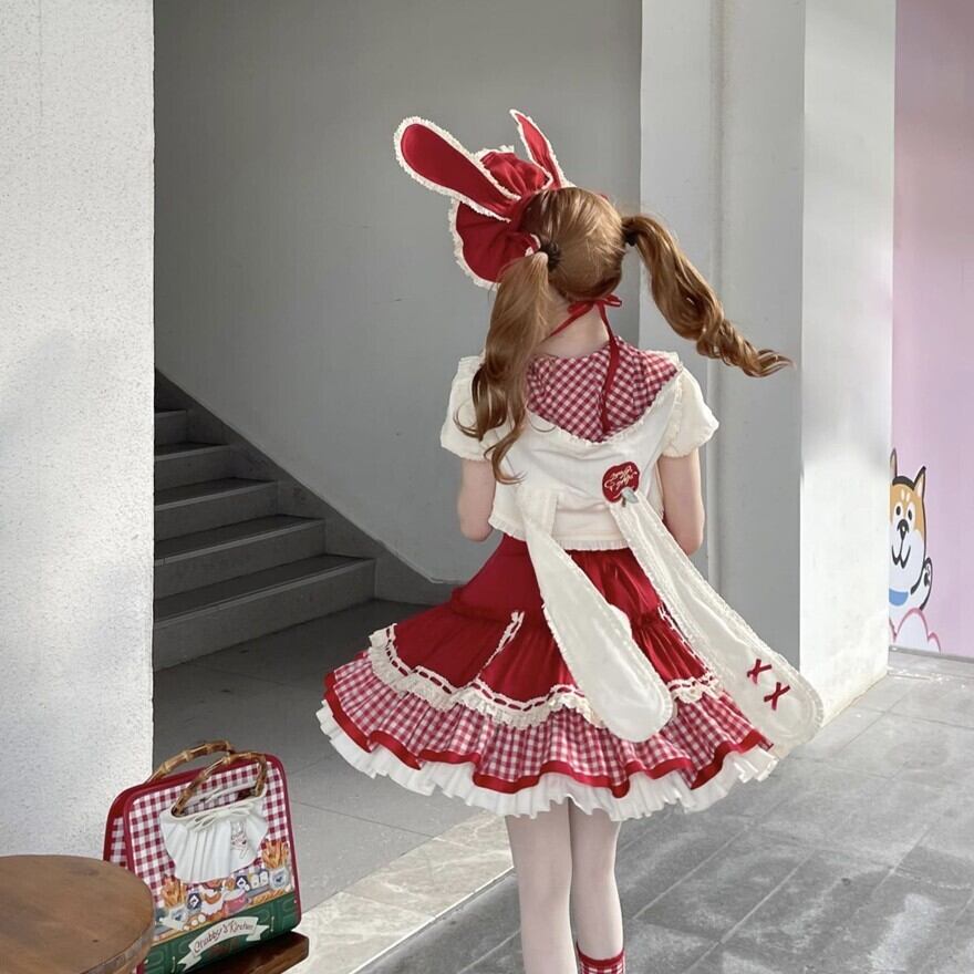 関連キーワード: #ロリータ #ロリータファッション #甘ロリ #ジャンパースカート #ジャケット #セットアップ #うさ耳 #りんご #ギンガムチェック #可愛い