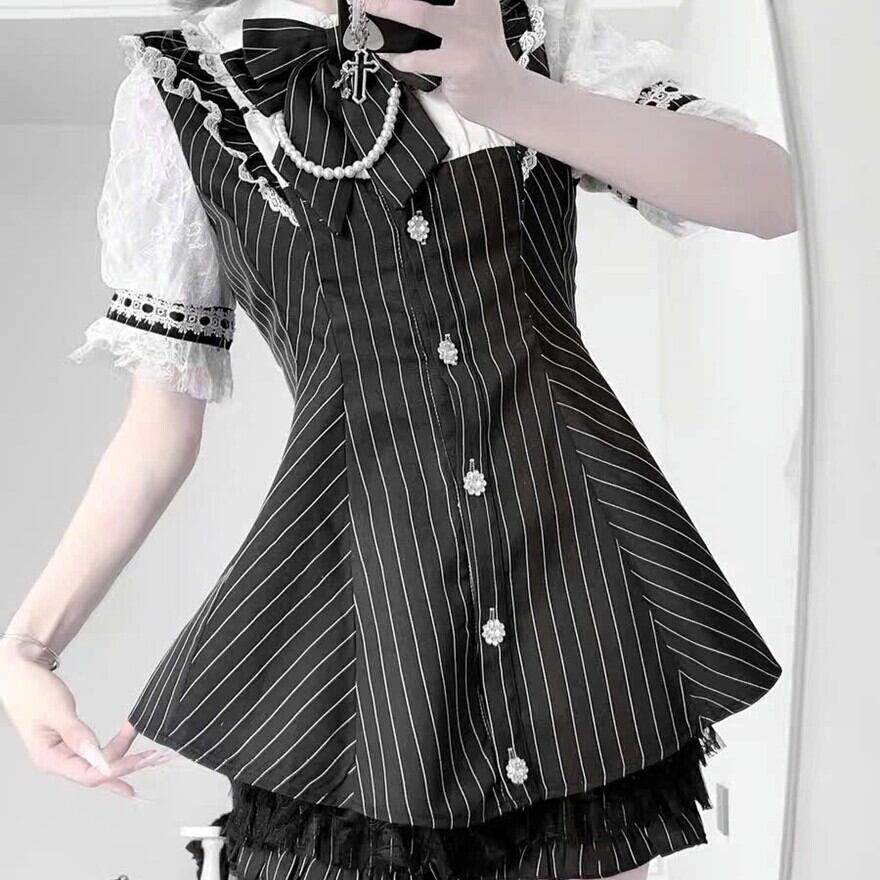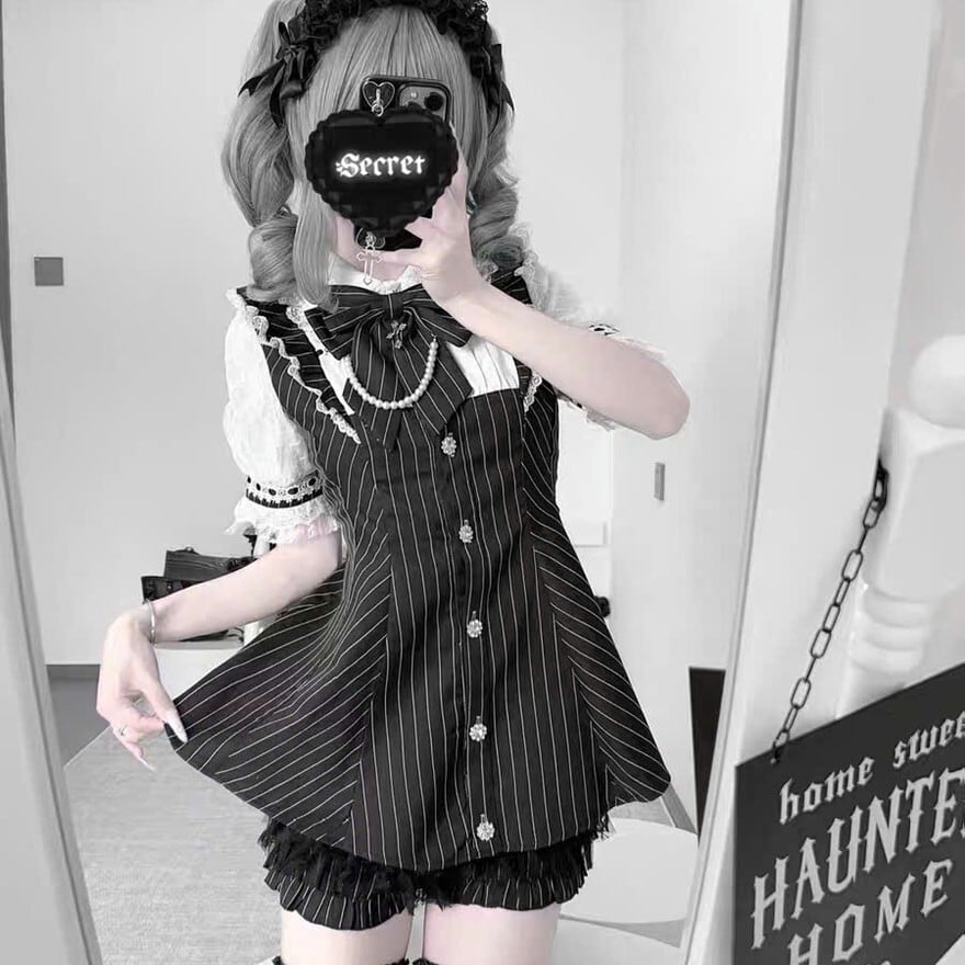 関連キーワード: #セットアップ #ロリータ #ストライプ #モノトーン #リボン #パール #量産型 #地雷系 #ドーリー #可愛い
