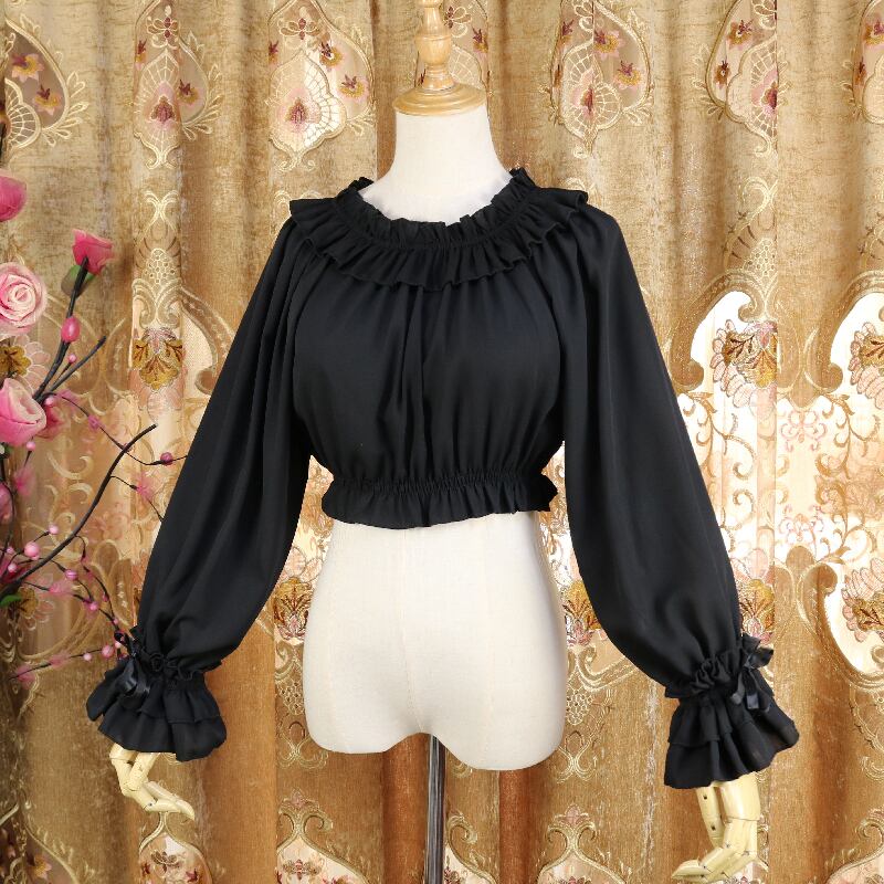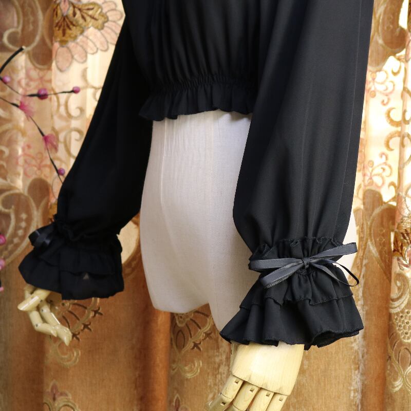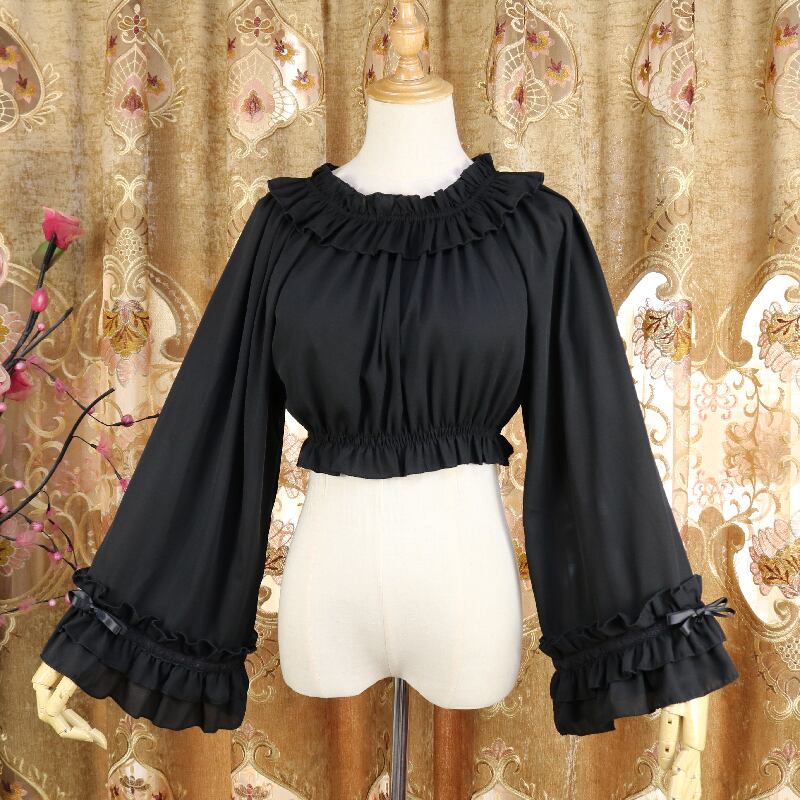 ブラウス トランペットスリーブ フリル ネックギャザー 甘め ゴスロリ