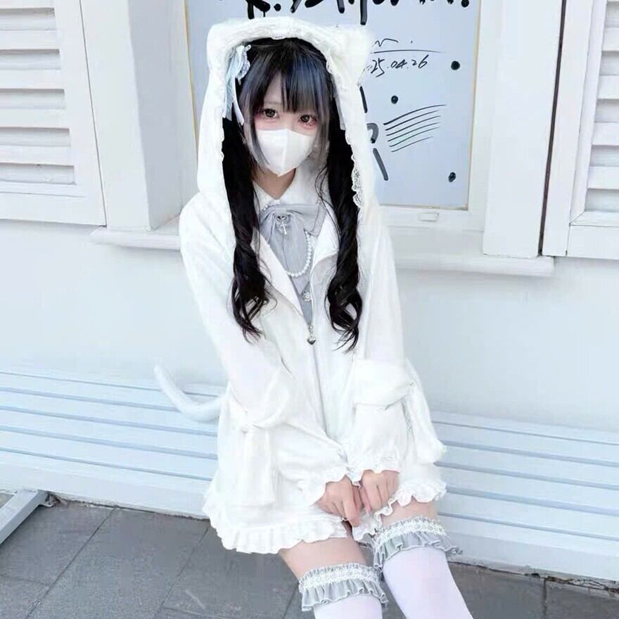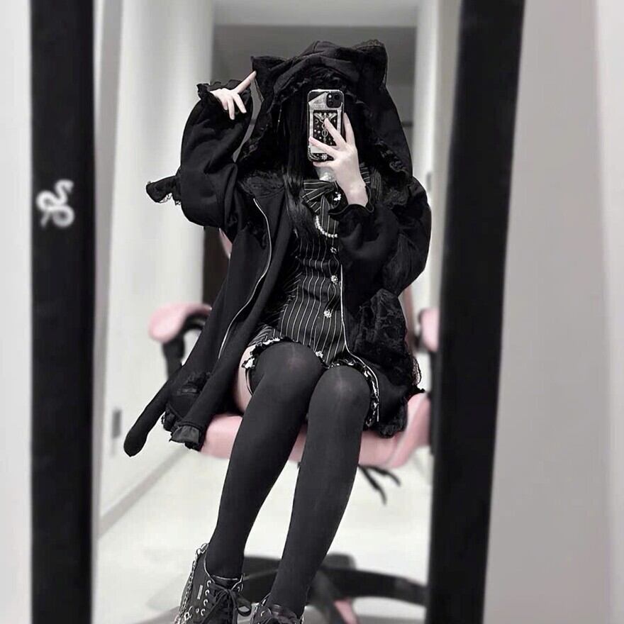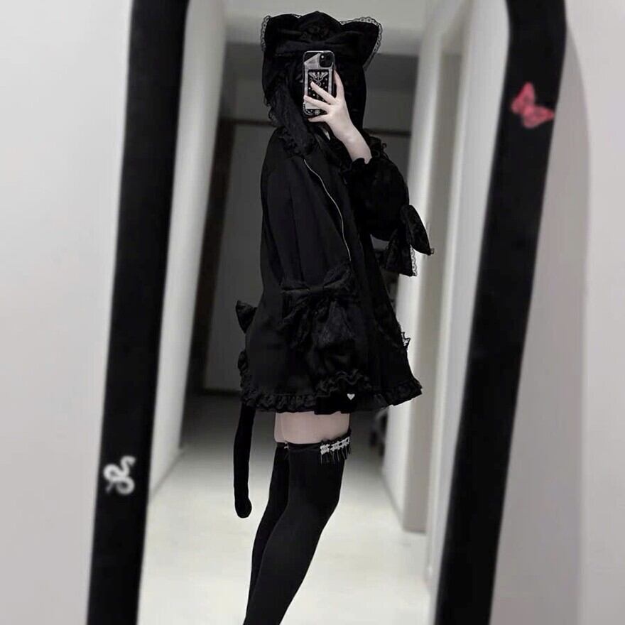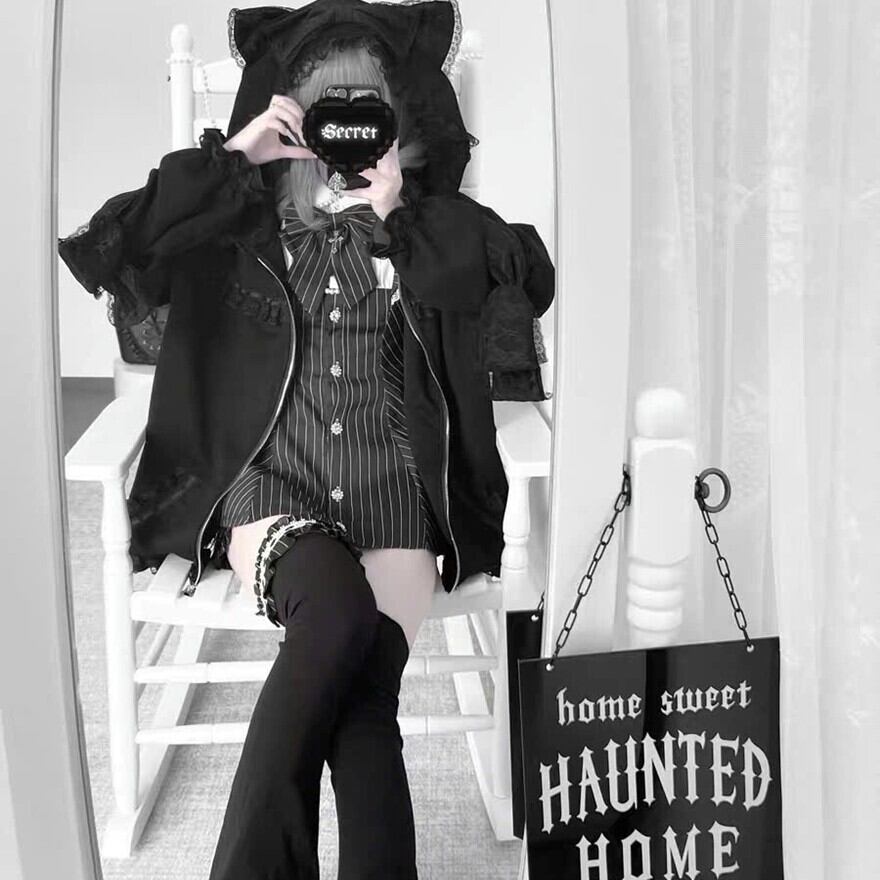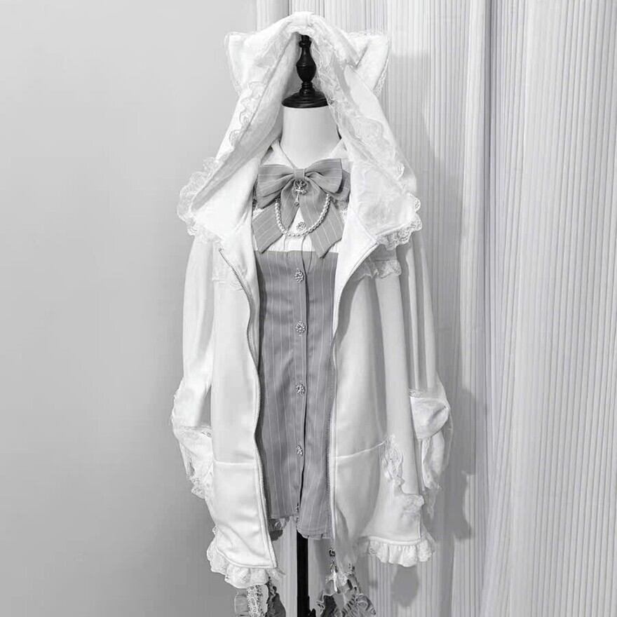 関連キーワード: #パーカー #ロリータ #猫耳 #アウター #ジップアップ #ゴスロリ #甘ロリ #地雷系 #モノトーン #可愛い