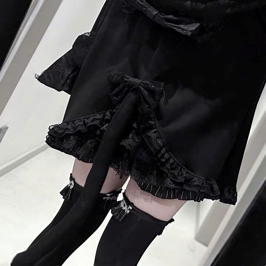 ミニ丈のワンピースやジャンパースカートに合わせれば、裾のレースがちら見えしてさらにキュートな印象に。ショートパンツやスキニーパンツと合わせて、ストリート系の地雷系ファッションを楽しむのもおすすめです。