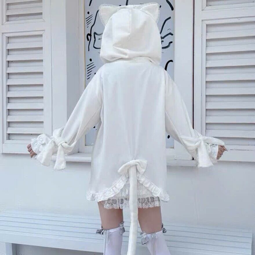 地雷系 猫耳 フーディ ジャケット しっぽ付きフリル レース