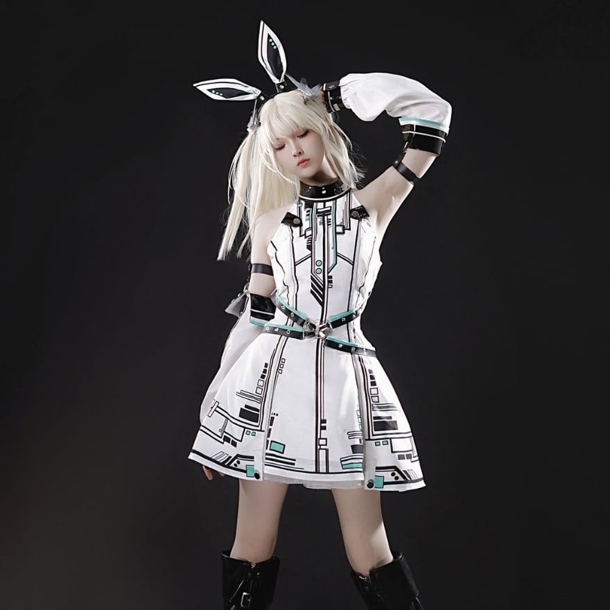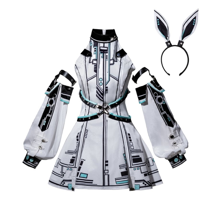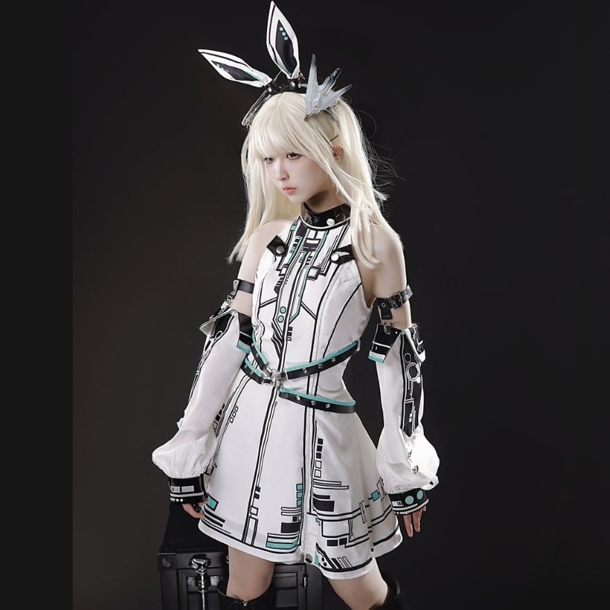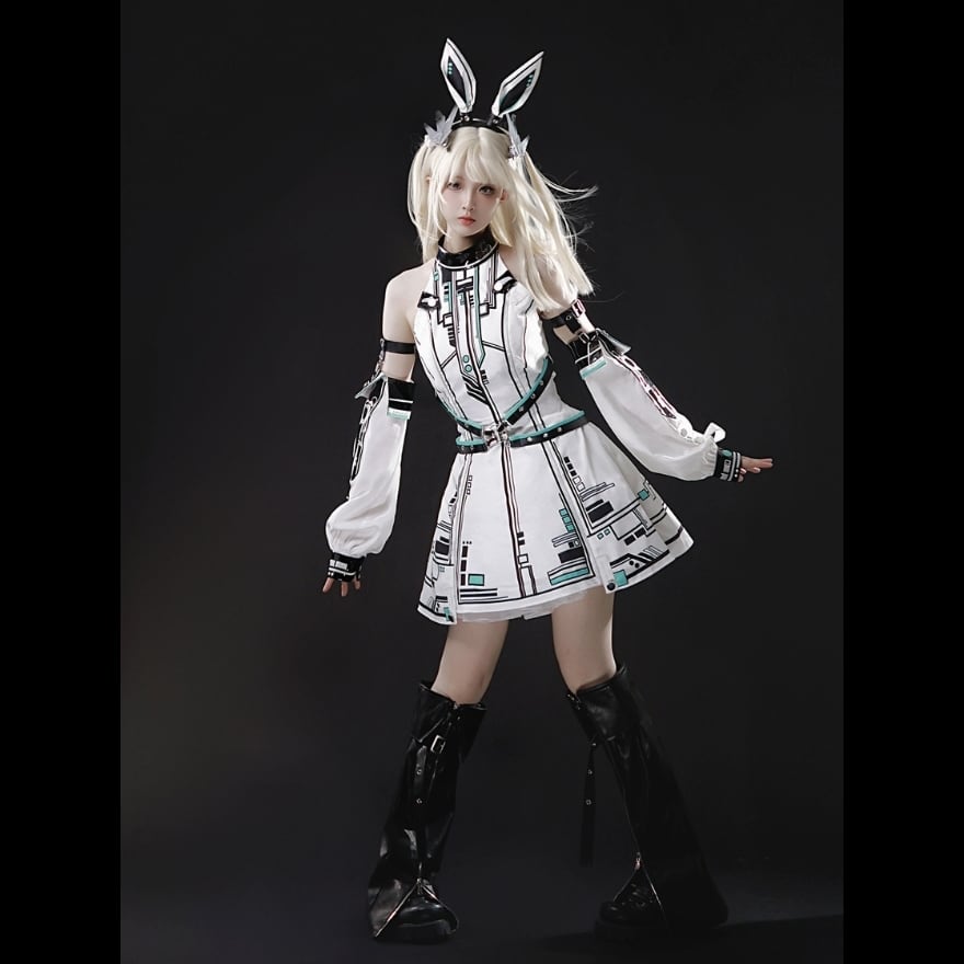 ヘッドバンドやアームカバーといった小物がセットになっているため、これ一つでクールな電脳系ファッションが完成します。