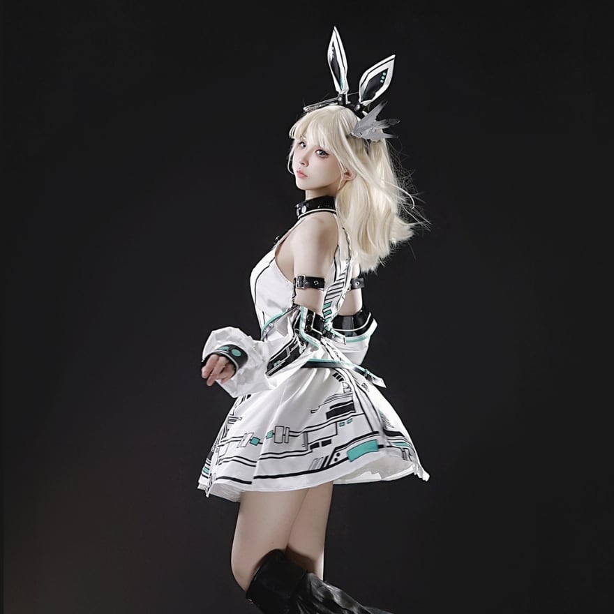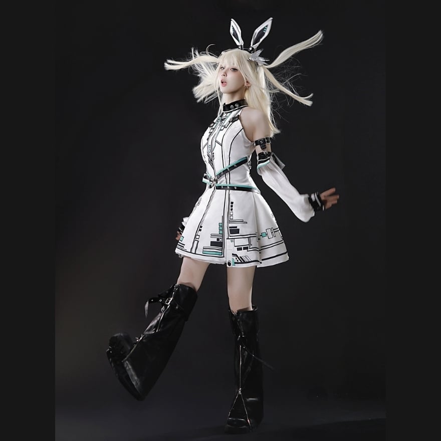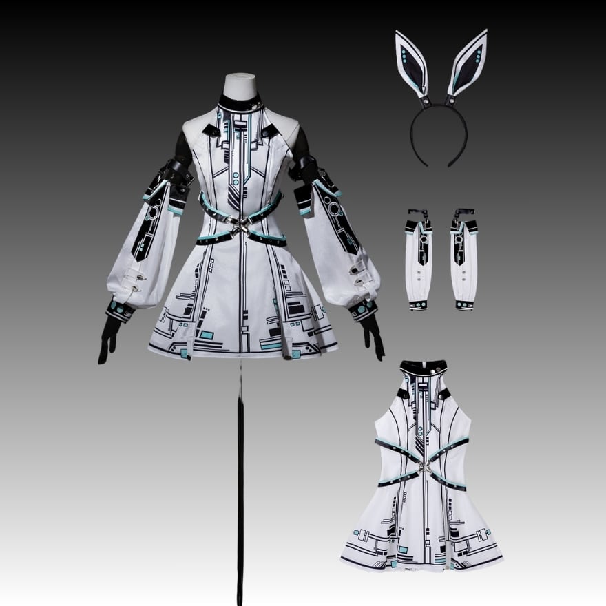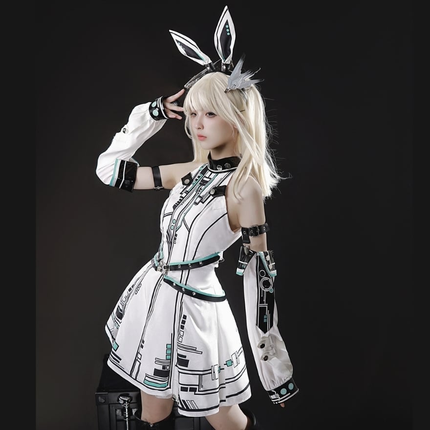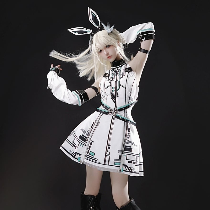 ヘッドバンドやアームカバーといった小物がセットになっているため、これ一つでクールな電脳系ファッションが完成します。