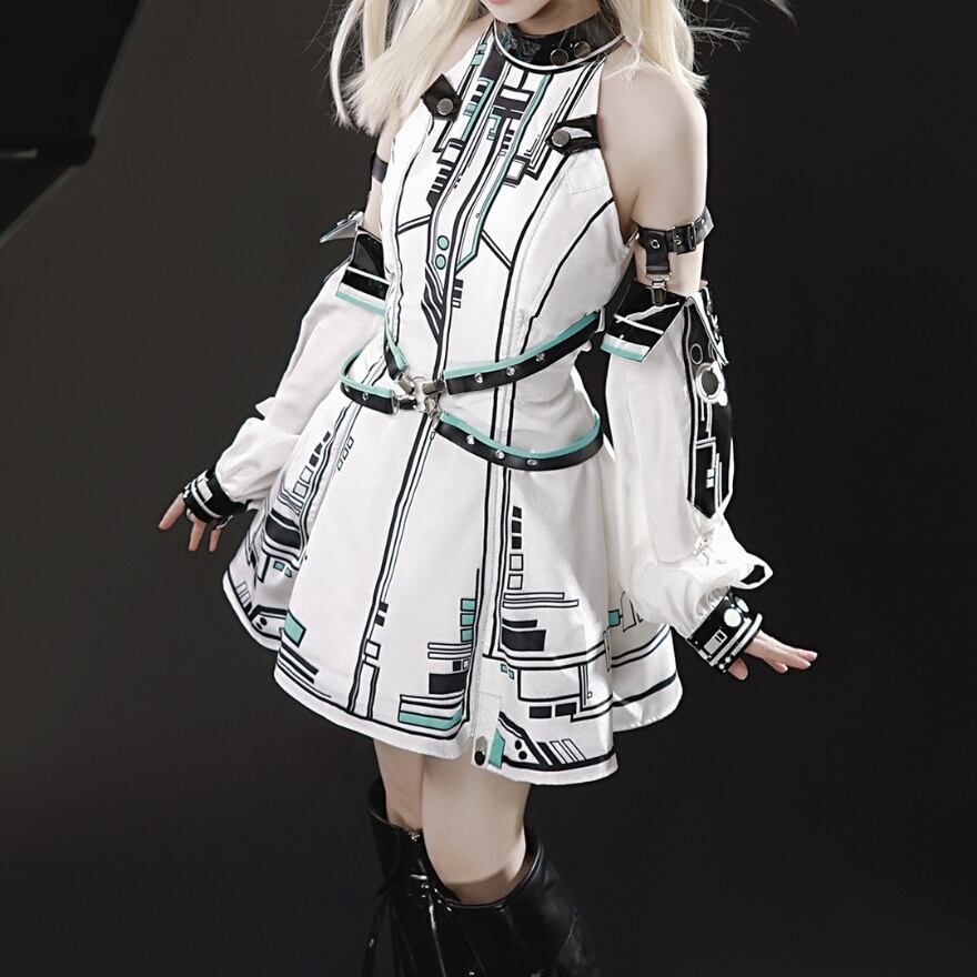 サイバーパンク サブカル 電脳 パンク 電子回路パターン セットアップ ヘッドバンド 付け袖 ワンピース イベント衣装