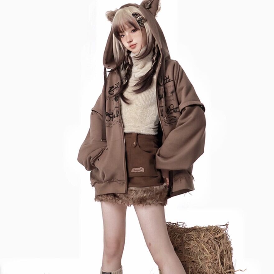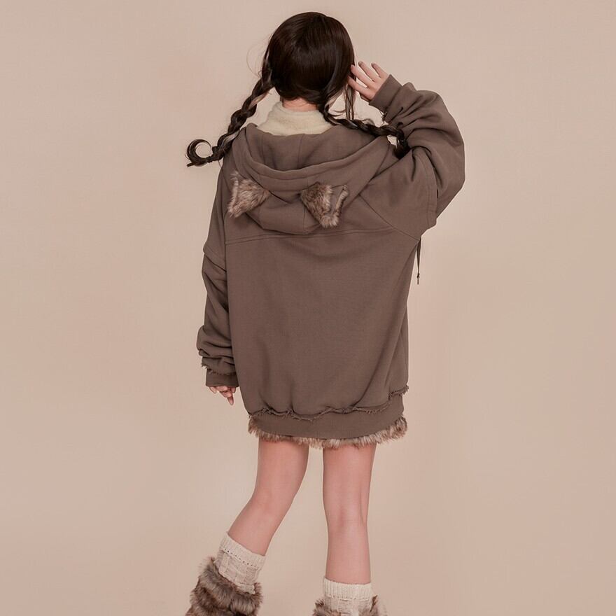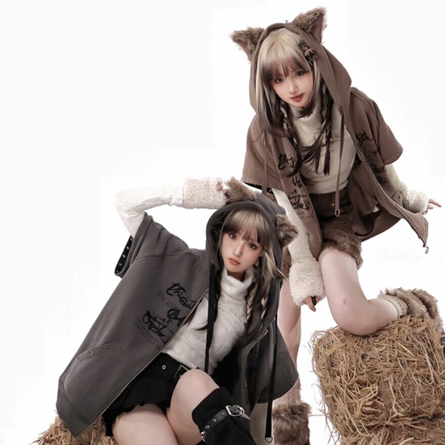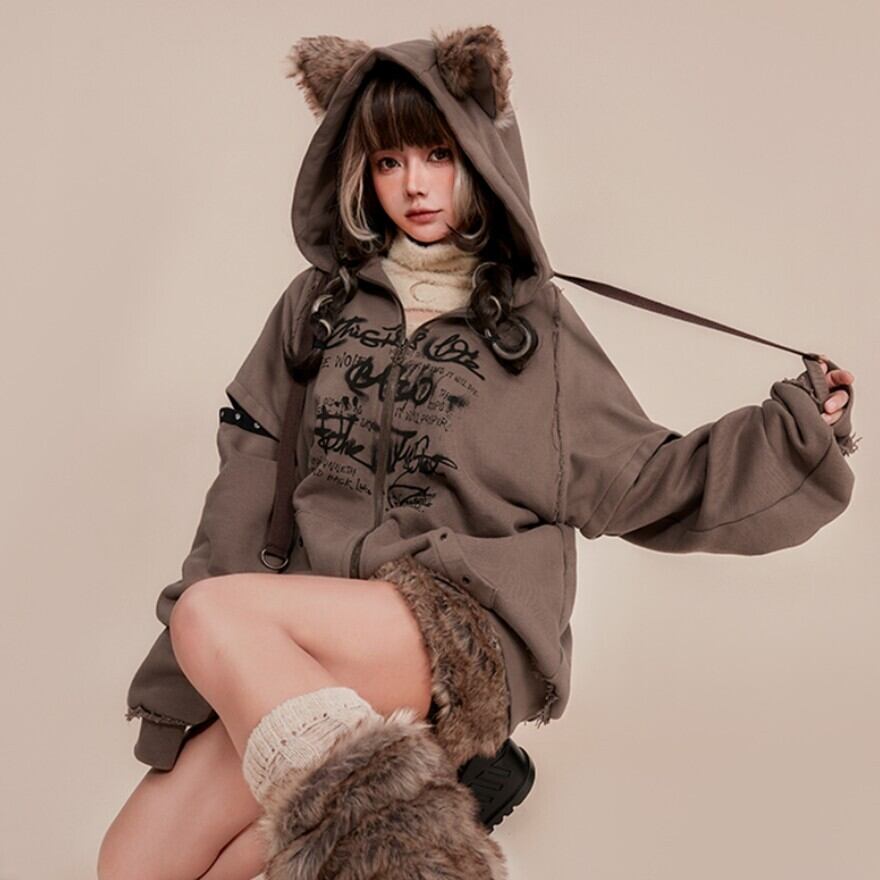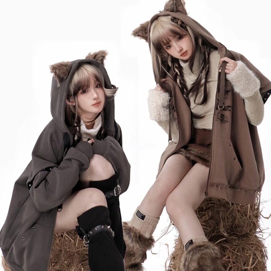 フードにはアニマルモチーフの耳が付いており、キュートなアクセントになっています。