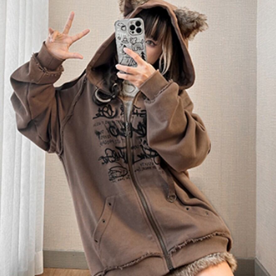 関連キーワード: #フーディ #パーカー #ストリート #地雷系 #サブカル #オーバーサイズ #ダメージ加工 #パンク #ロック #アニマルモチーフ #グラフィック
