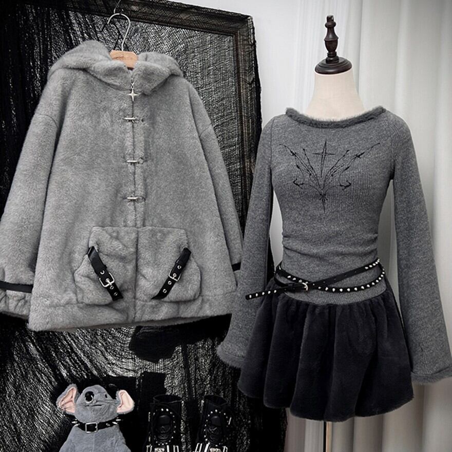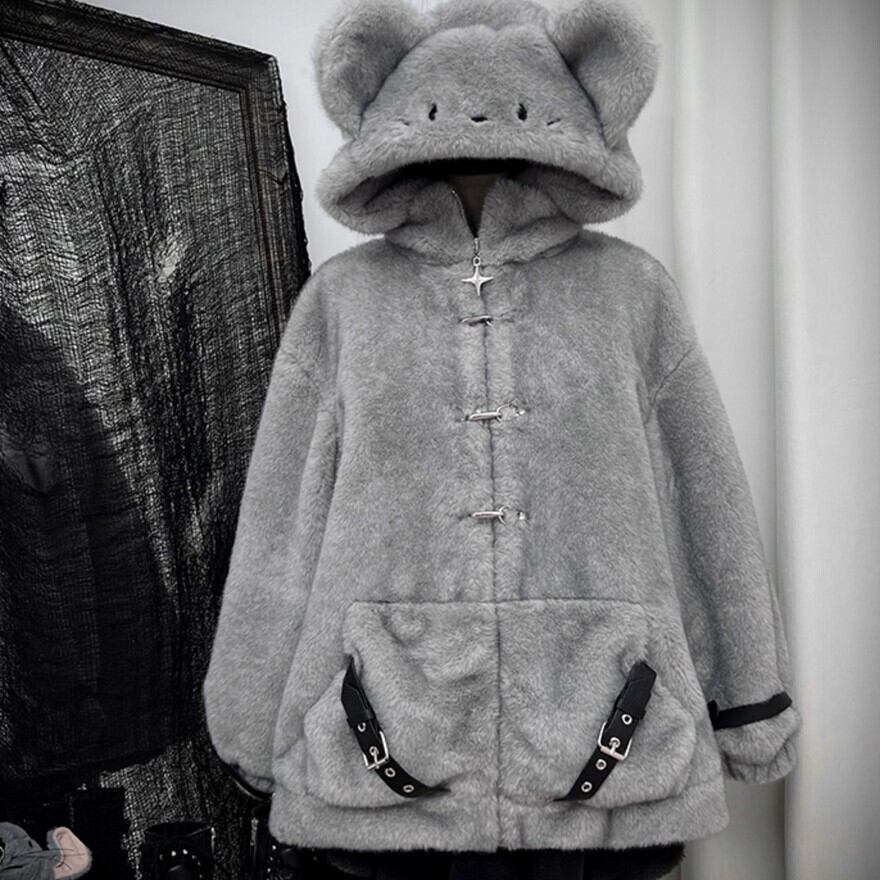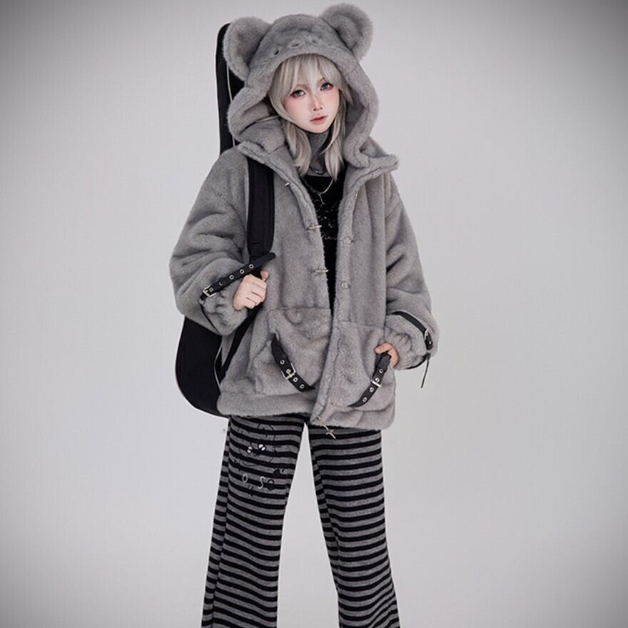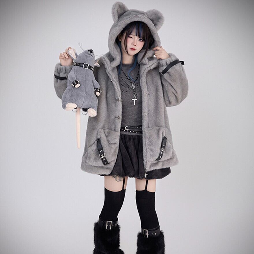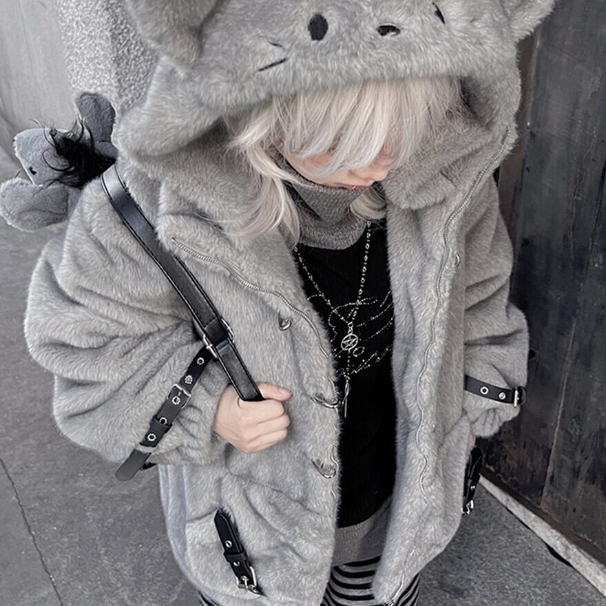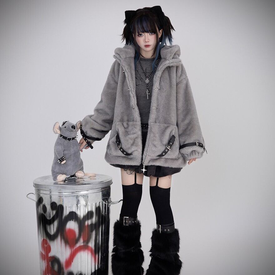 パンク フーディ マウス帽 もふもふ ジャケット サブカル系 ストリートファッション