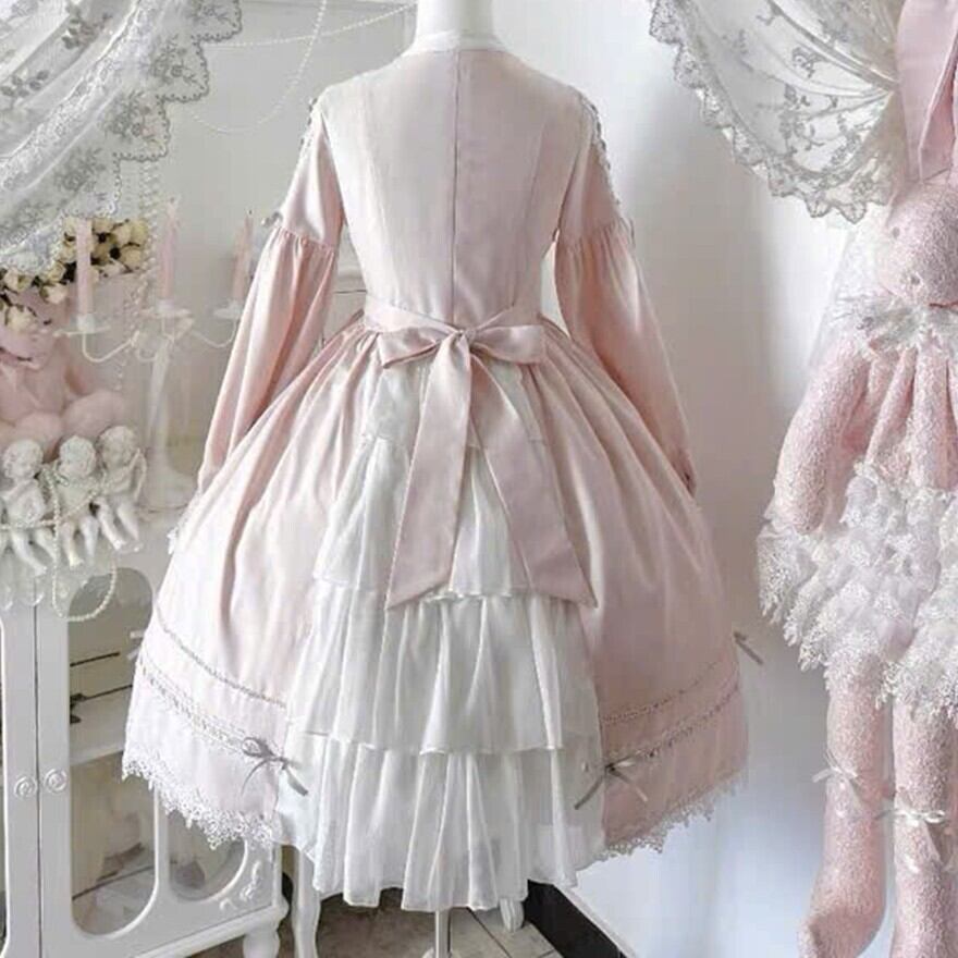 ふんわりと広がるAラインのスカートシルエットと、パフスリーブに近い長袖のデザインが、上品でドーリーな印象を与えるクラシカルロリータのワンピースです。