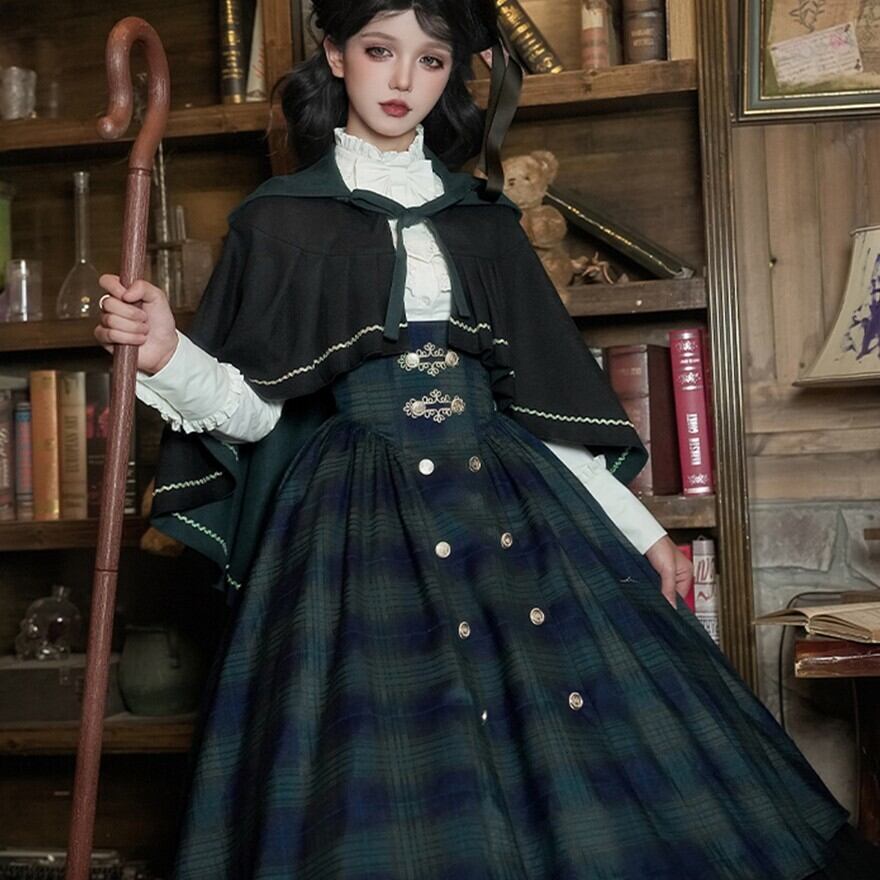 クラシカルロリィタ 4点セット ロングスカート チェック柄 秋冬ロリータ