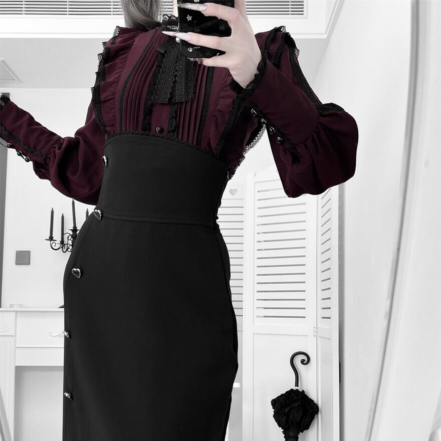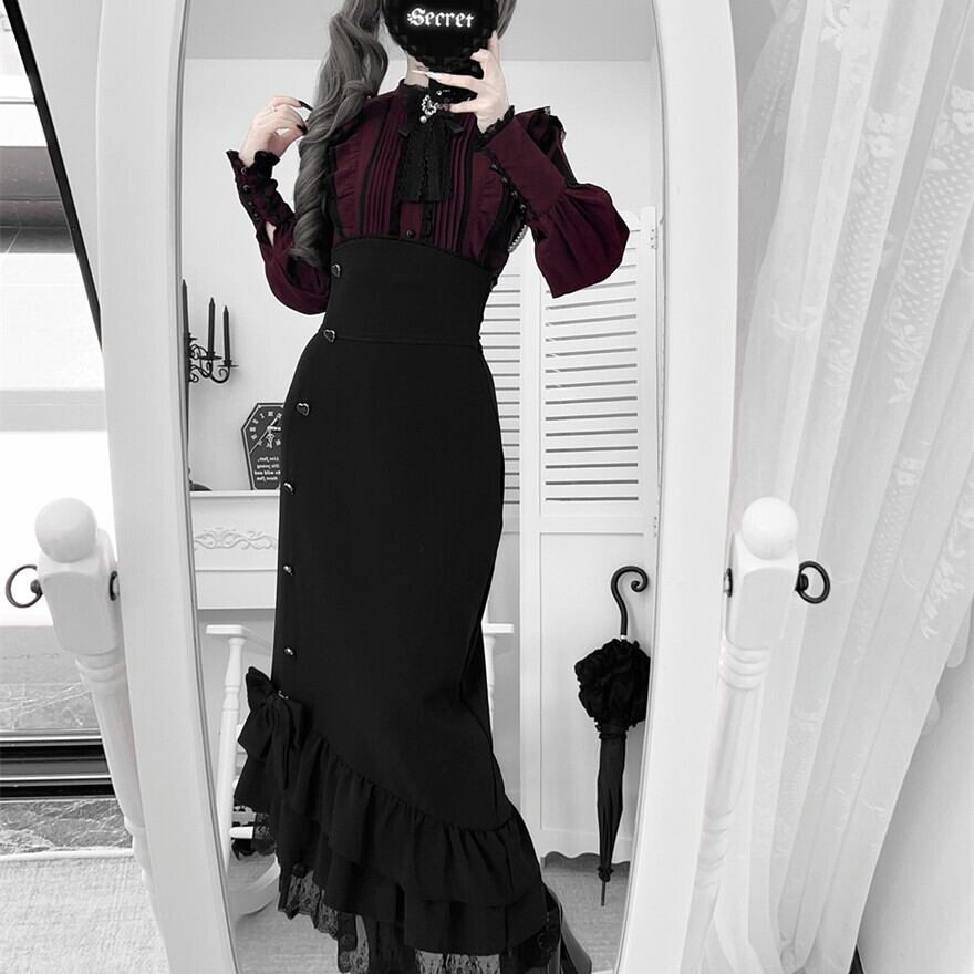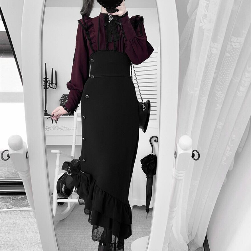 【予約商品 納期45日】地雷系 セットアップ マーメイドスカート ピンタックブラウス|Alicestyle