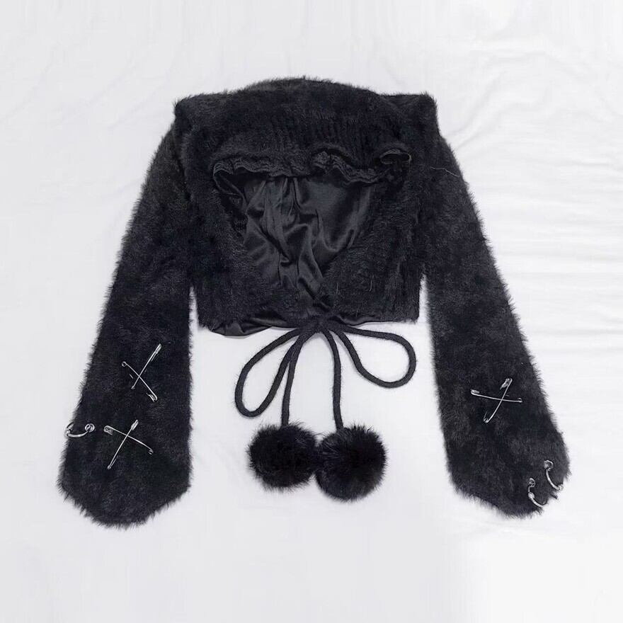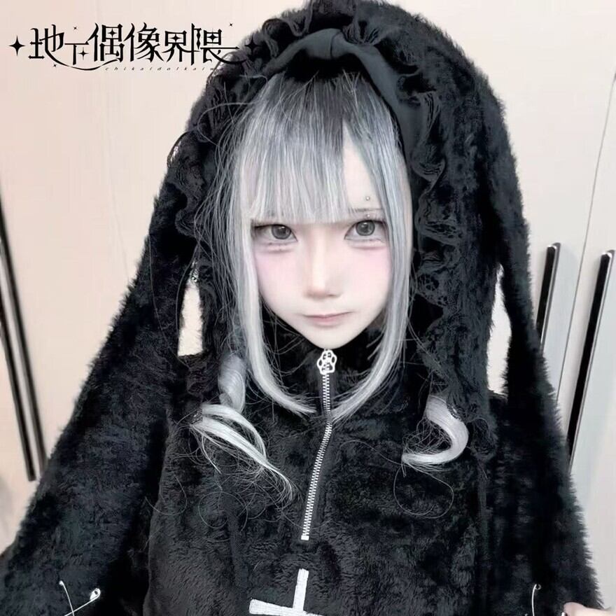 関連キーワード: #うさ耳帽 #ファー #地雷系 #サブカル系 #ストリートファッション #モノトーン #安全ピン #ポンポン #甘辛ミックス