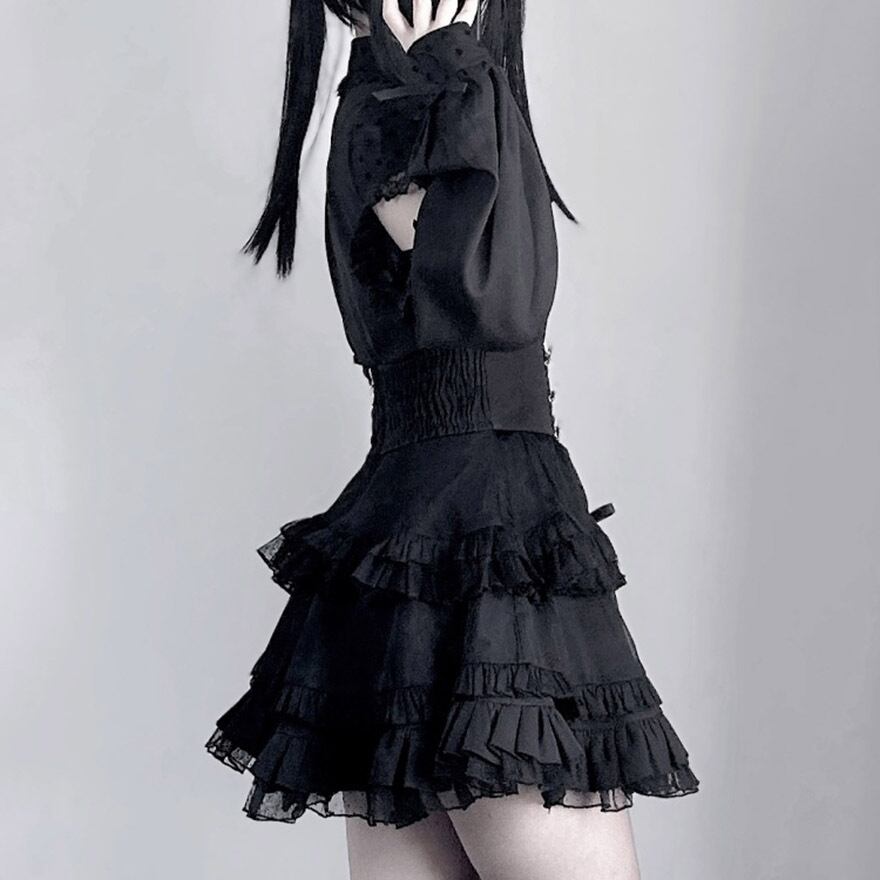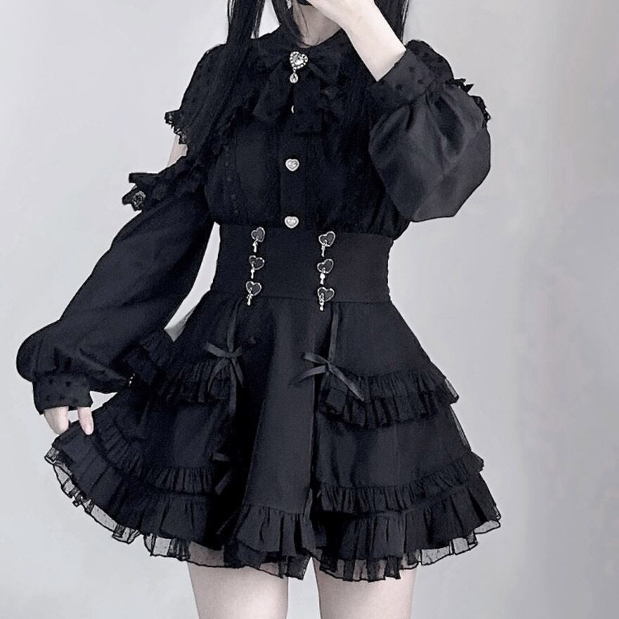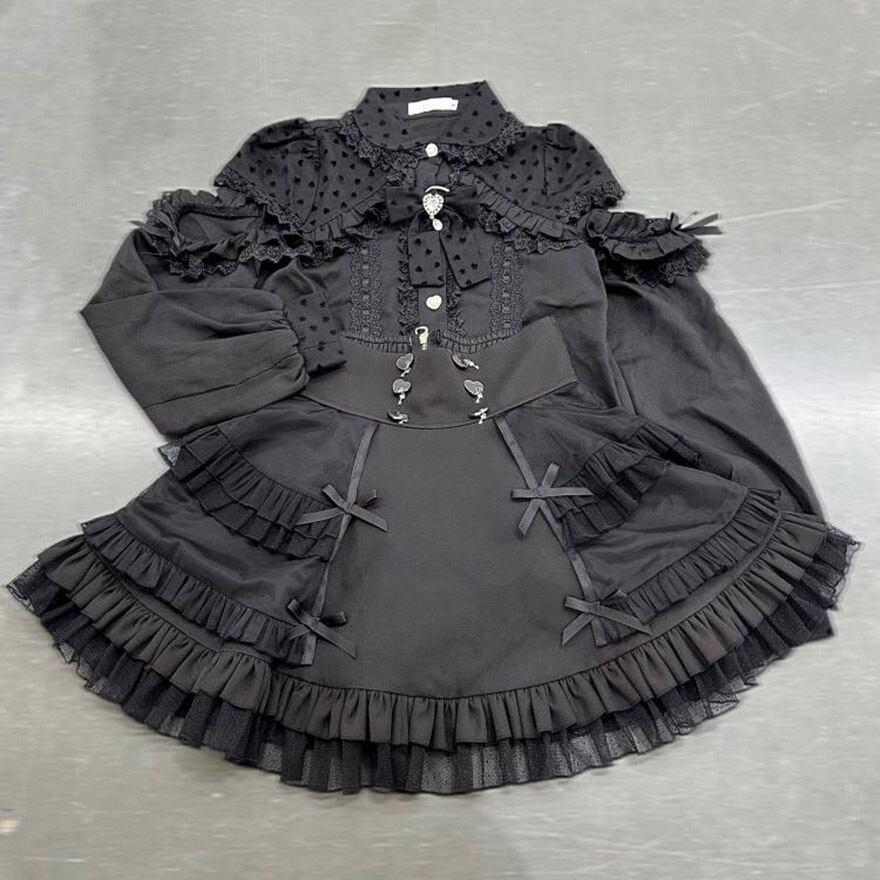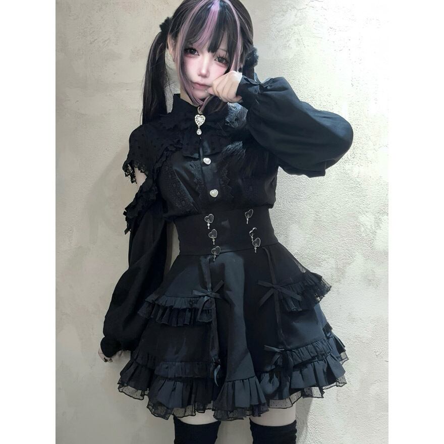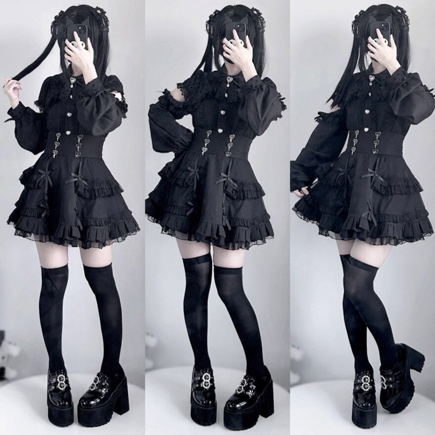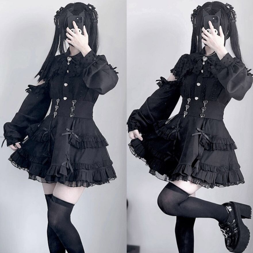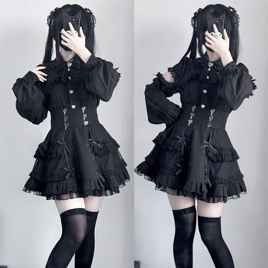関連キーワード: #地雷系 #ゴスロリ #ワンピース #ケーキスカート #ティアードスカート #黒 #レース #リボン #フリル #参戦服 #サブカル #可愛い #闇かわいい